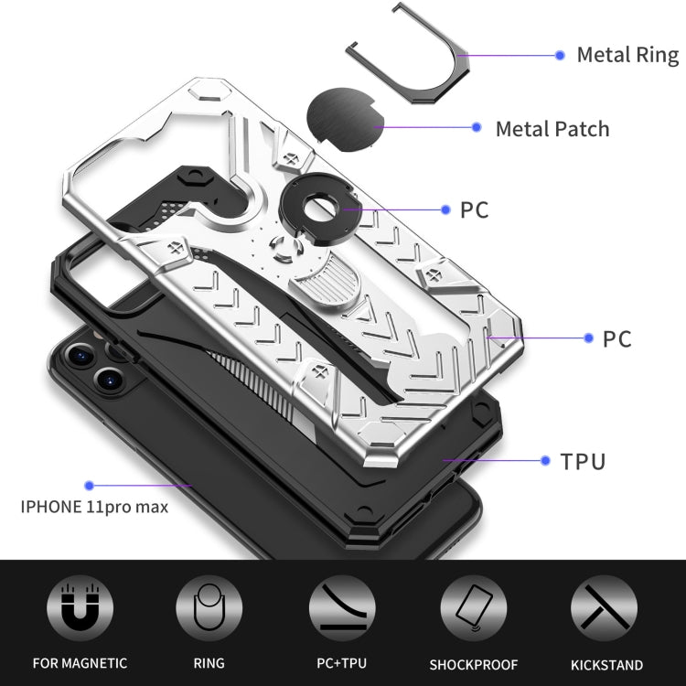 For iPhone 11 Pro Max Armor Knight Series 2 in 1 PC + TPU Protective Case with Ring Holder(Silver)