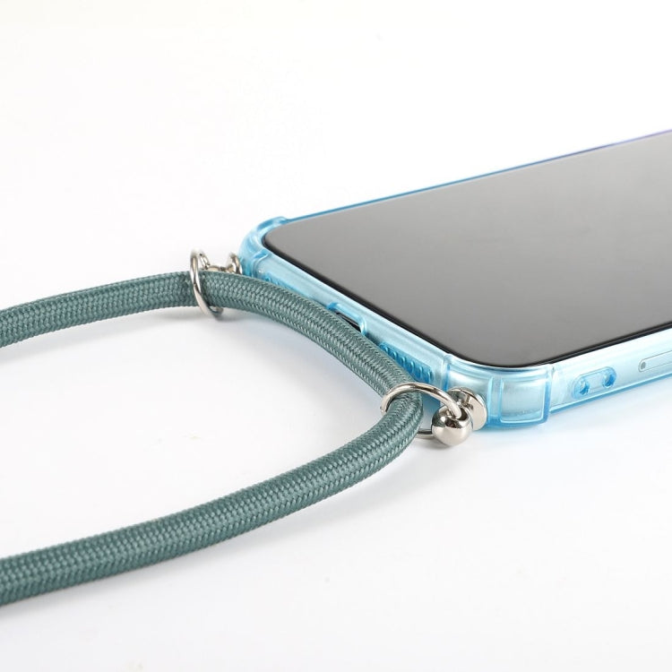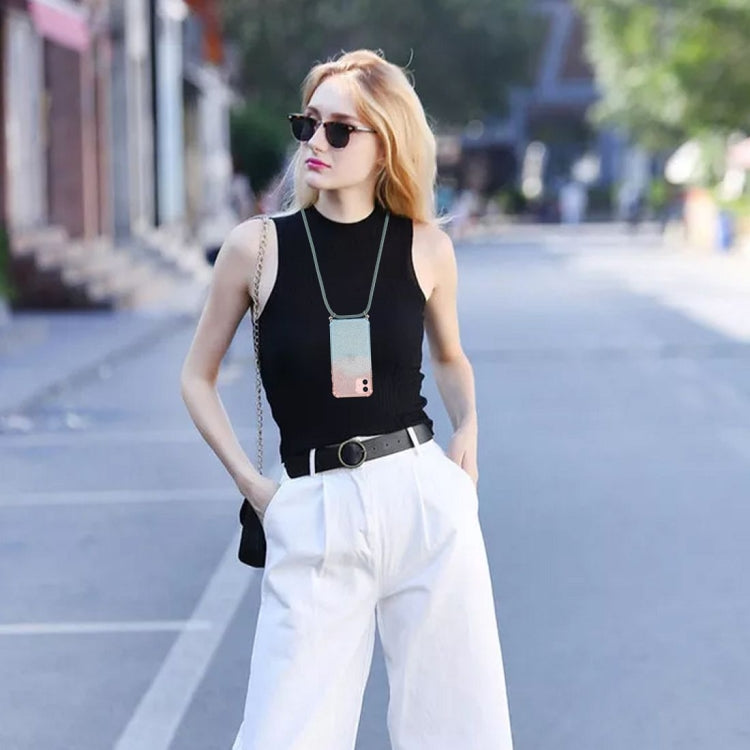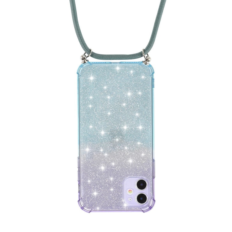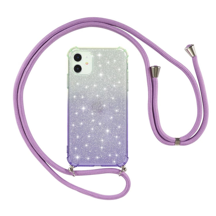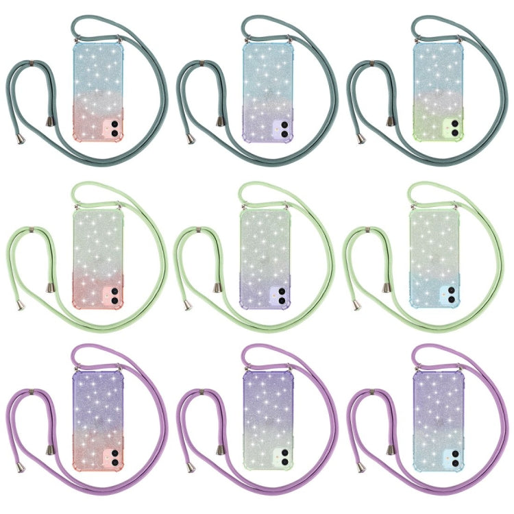 For iPhone 11 Pro Max Gradient Glitter Powder Shockproof TPU Protective Case with Lanyard(Green Purple)