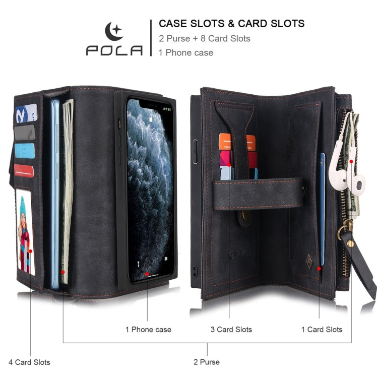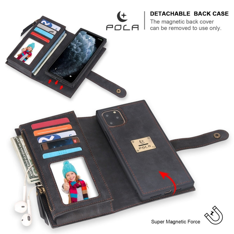 For iPhone 11 Pro Max POLA Multi-function Fashion Magnetic Horizontal Flip Leather Case with Card Slots & Wallet & Photo Frame & Holder(Black)