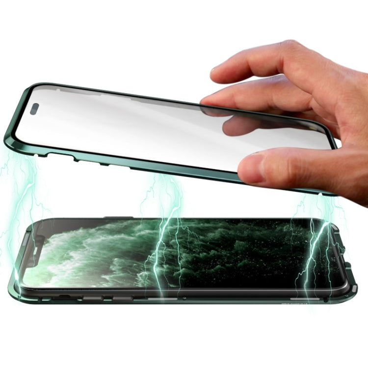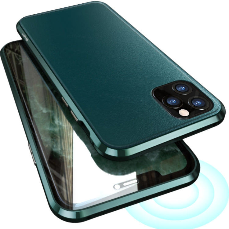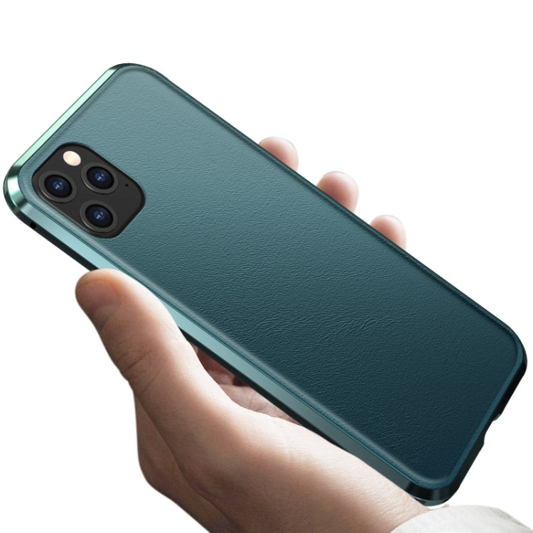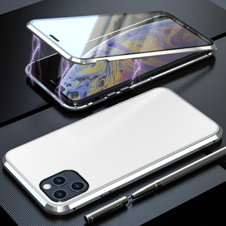 For iPhone 11 Pro Max Shockproof Magnetic Attraction Leather Backboard + Tempered Glass Protective Case(Silver)