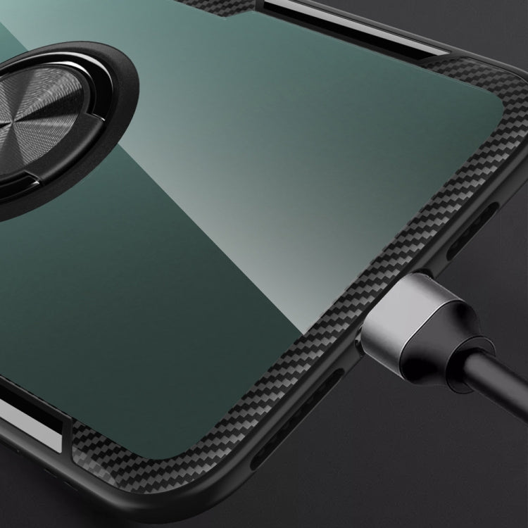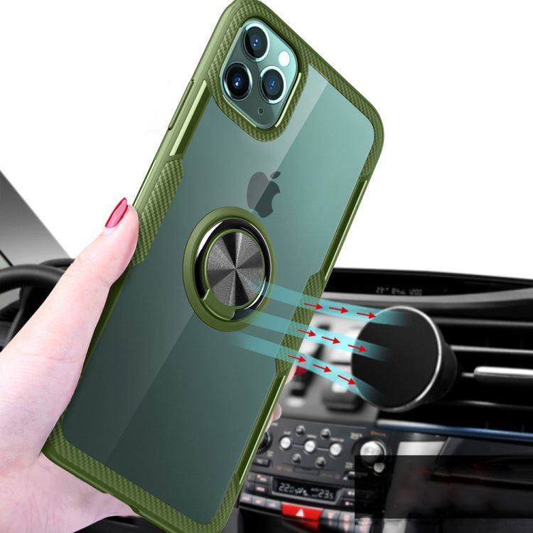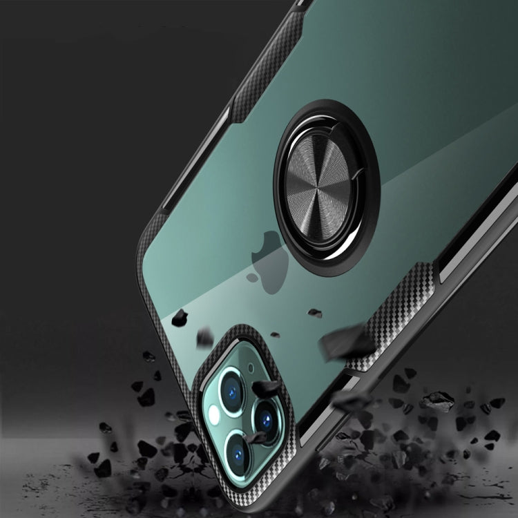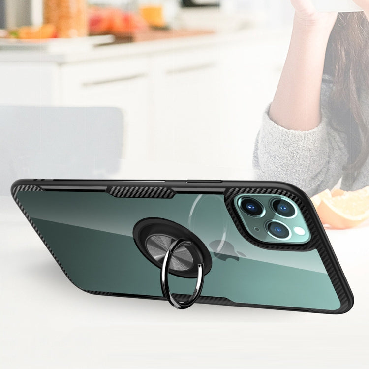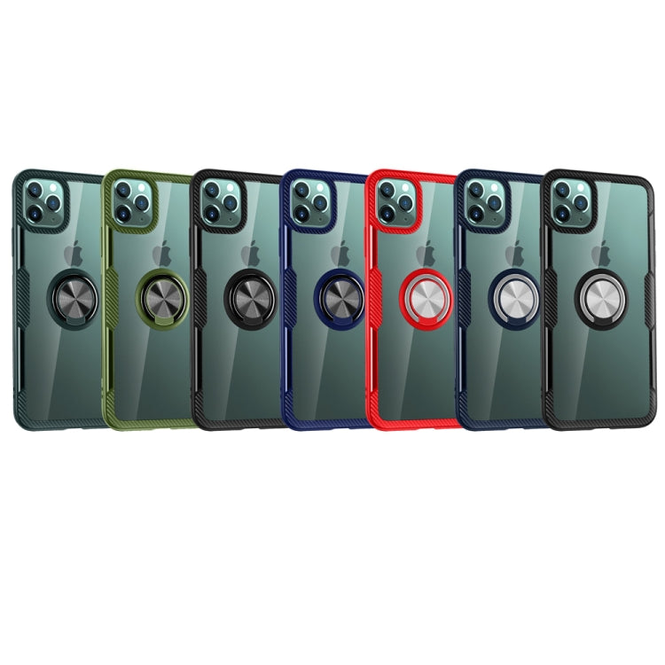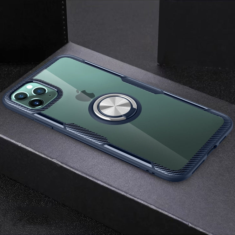 For iPhone 11 Pro Max Shockproof Transparent TPU + Acrylic Protective Case with Ring Holder(Navy Blue)