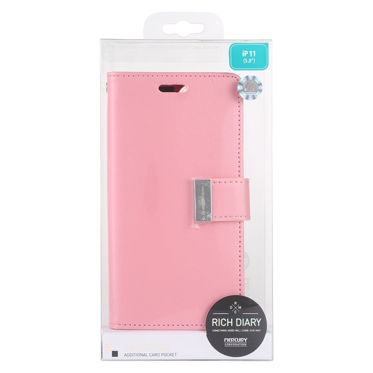 For iPhone 11 Pro MERCURY GOOSPERY RICH DIARY Crazy Horse Texture Horizontal Flip Leather Case with Holder & Card Slots & Wallet(Pink)