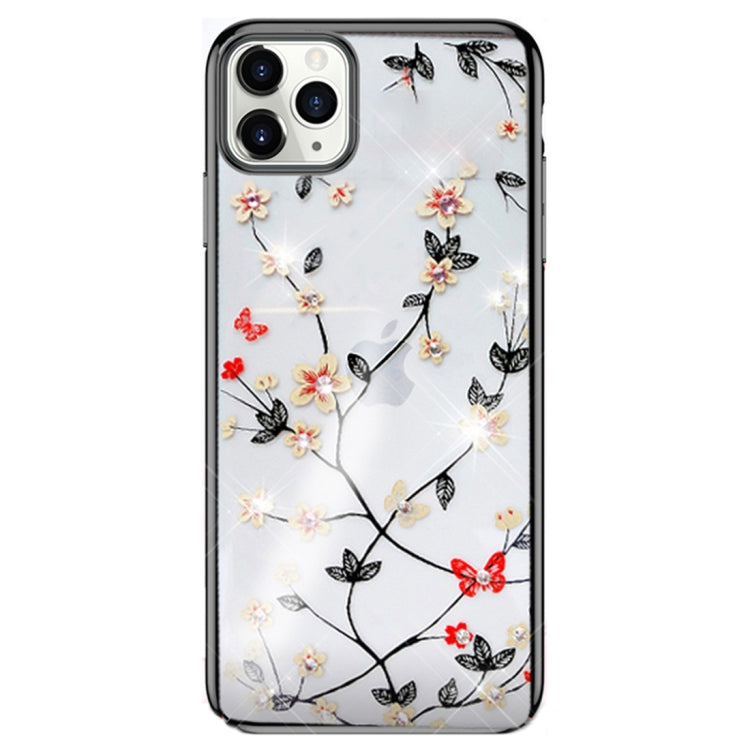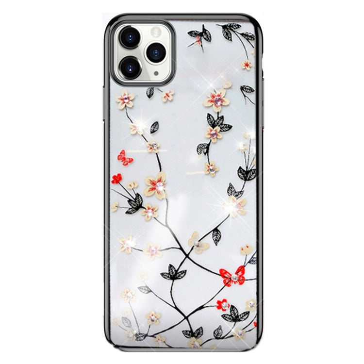 For iPhone 11 Pro SULADA Flower Pattern Plating Diamond PC Protective Case(Black)