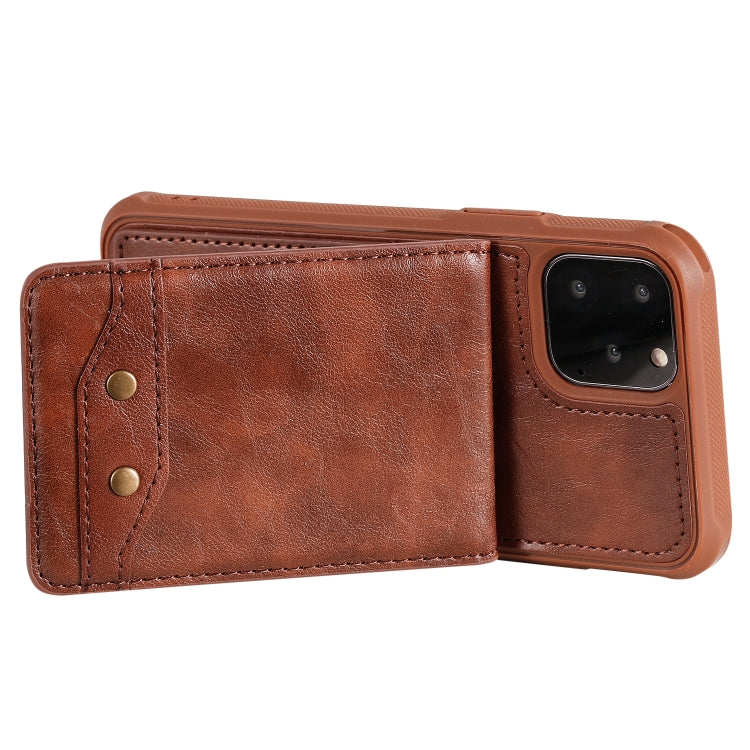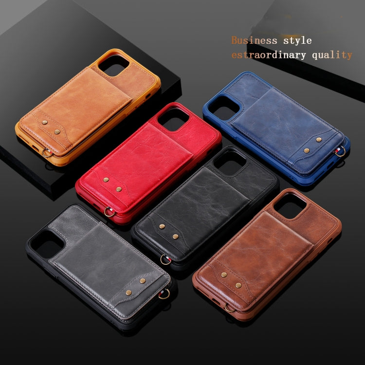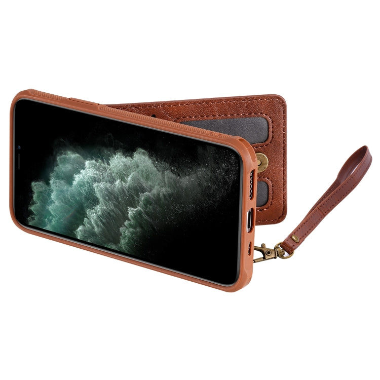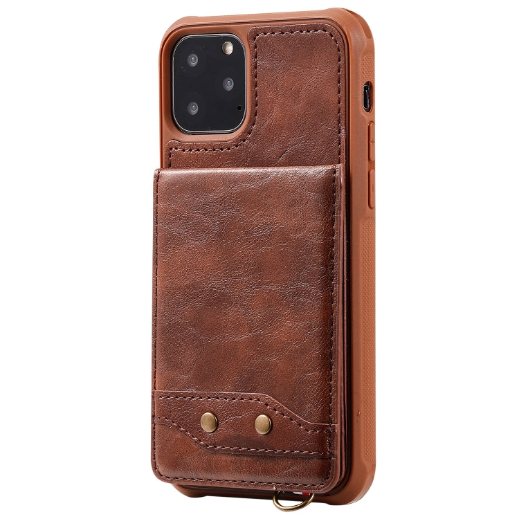 For iPhone 11 Pro Vertical Flip Wallet Shockproof Back Cover Protective Case with Holder & Card Slots & Lanyard & Photos Frames(Coffee)