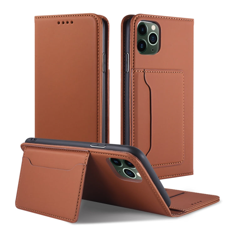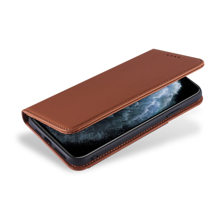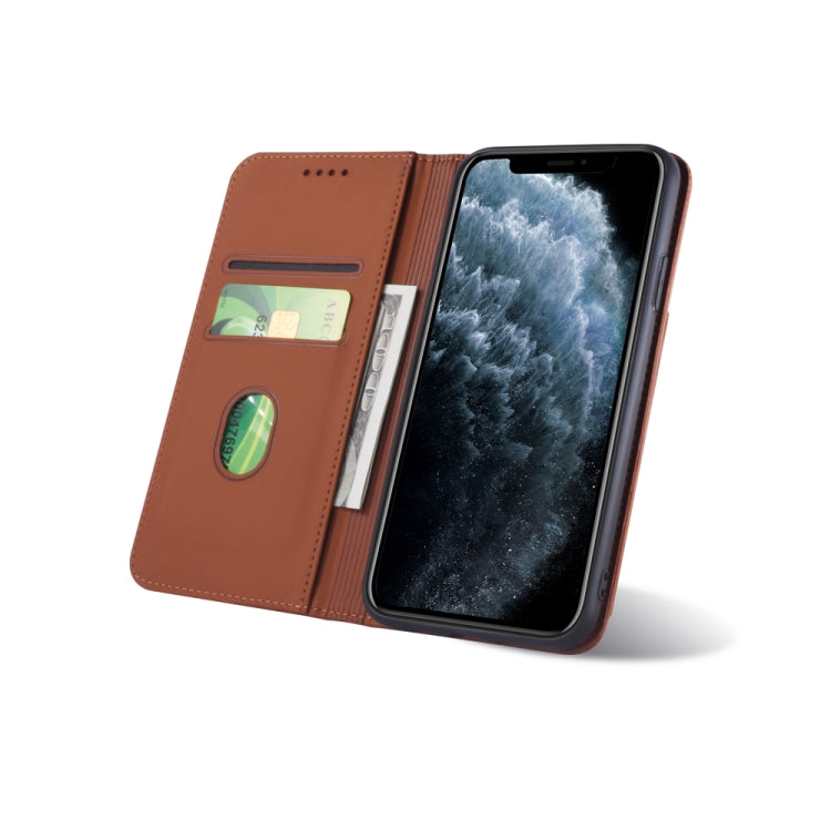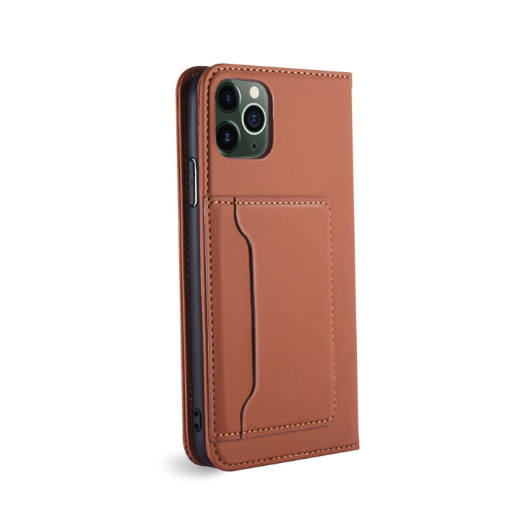 For iPhone 11 Strong Magnetism Shockproof Horizontal Flip Liquid Feel Leather Case with Holder & Card Slots & Wallet(Brown)