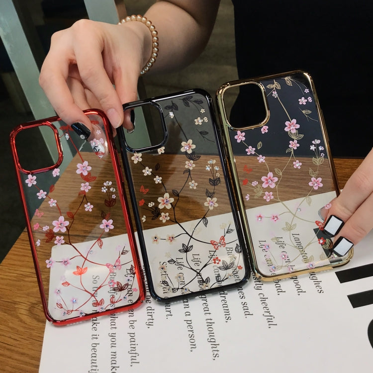For iPhone 11 SULADA Flower Pattern Plating Diamond PC Protective Case(Red)
