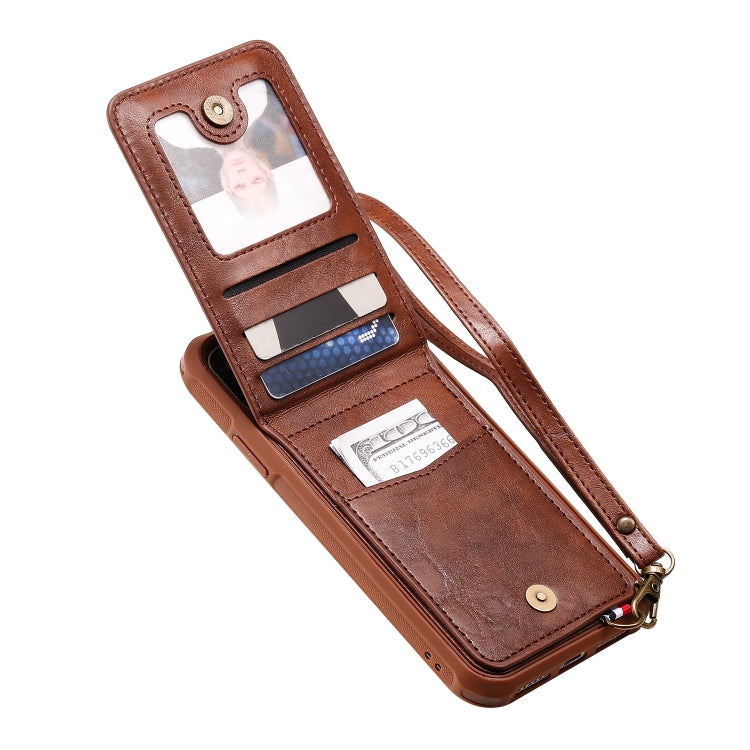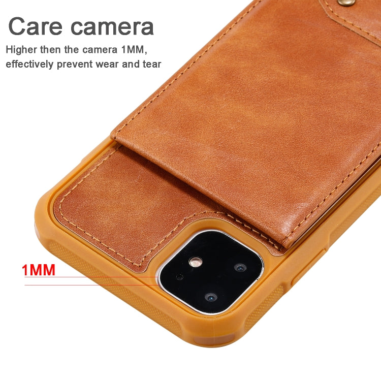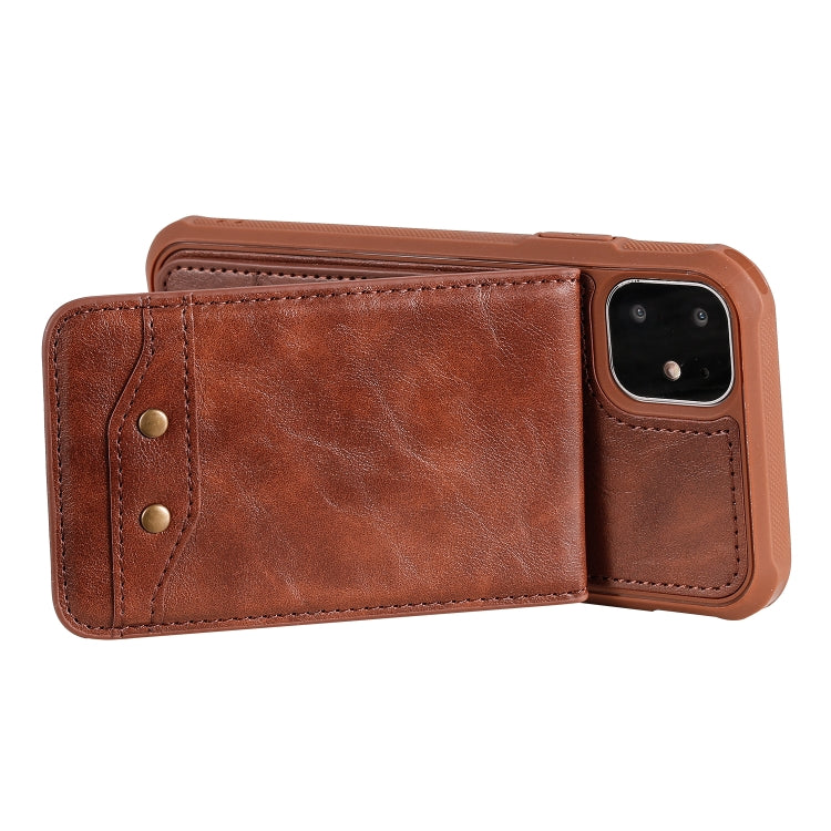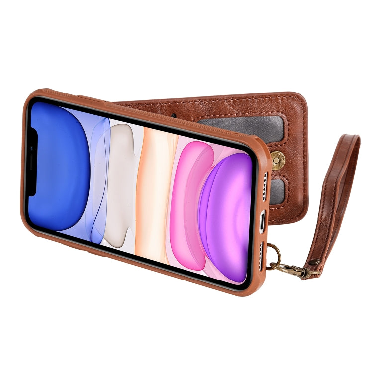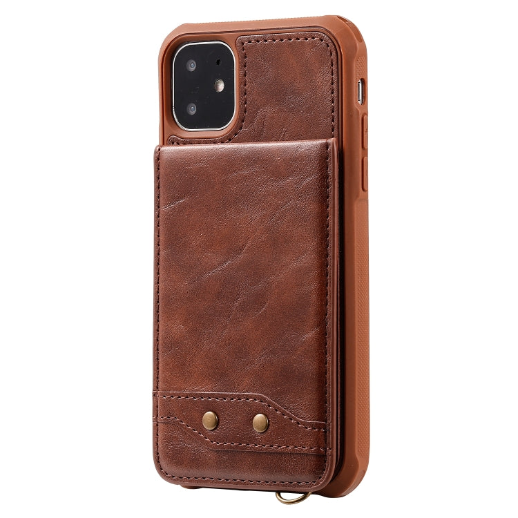 For iPhone 11 Vertical Flip Wallet Shockproof Back Cover Protective Case with Holder & Card Slots & Lanyard & Photos Frames(Coffee)