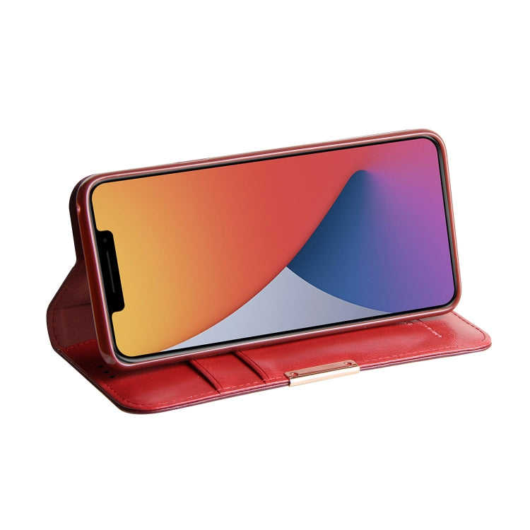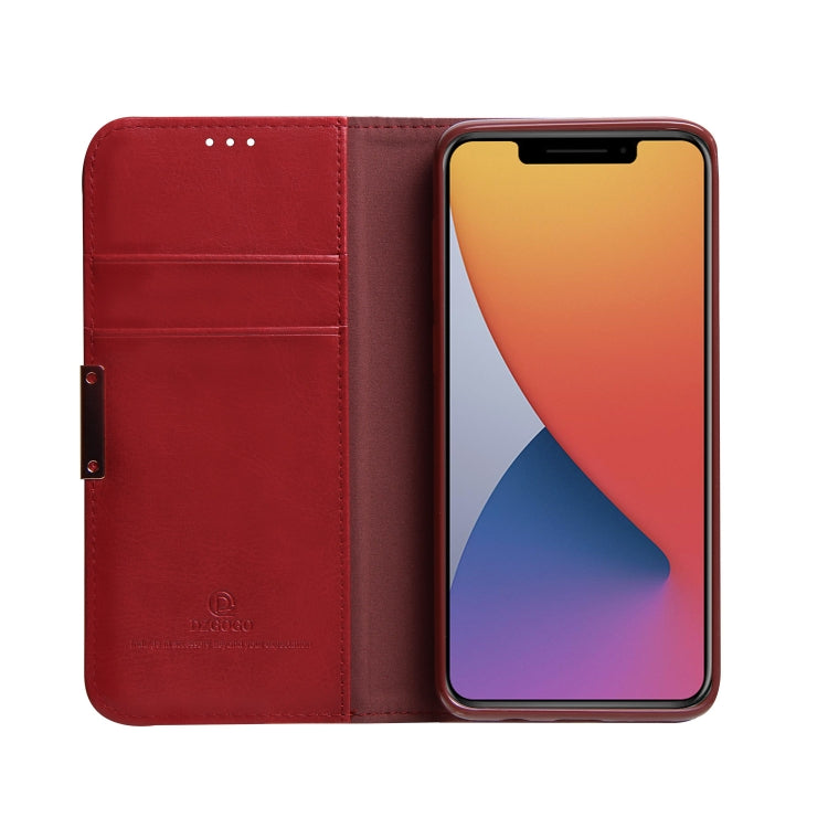 For iPhone 12 5.4 inch DZGOGO ROYALE II Series Magnetic Horizontal Flip Leather Case with Card Slots & Holder(Red)