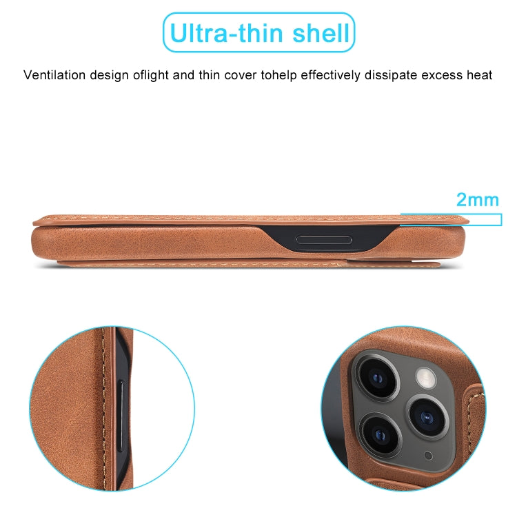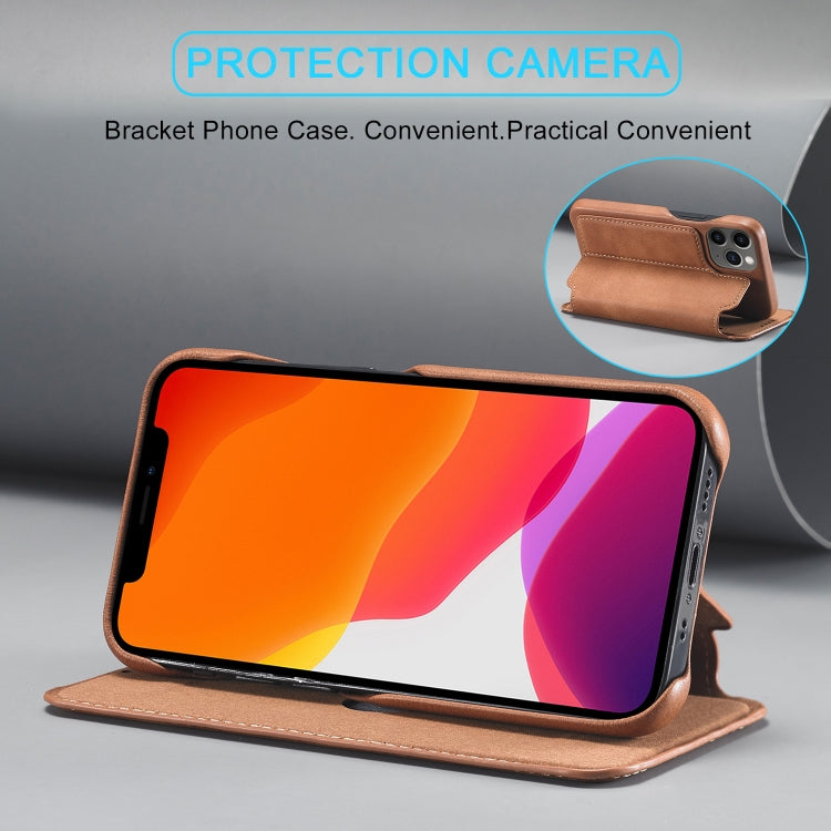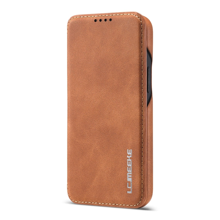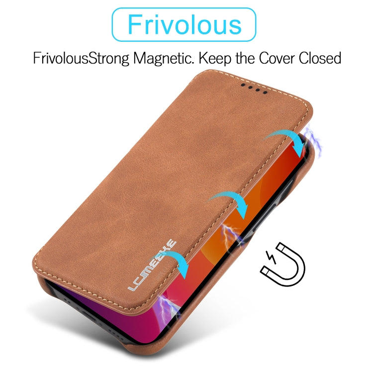 For iPhone 12 5.4 inch LC.IMEEKE Hon Ancient Series Horizontal Flip Leather Case with Holder & Card Slot(Brown)