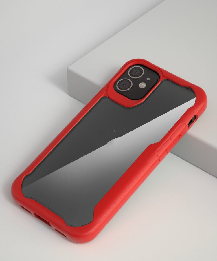 For iPhone 12 5.4 inch Transparent PC + TPU Full Coverage Shockproof Protective Case(Red)