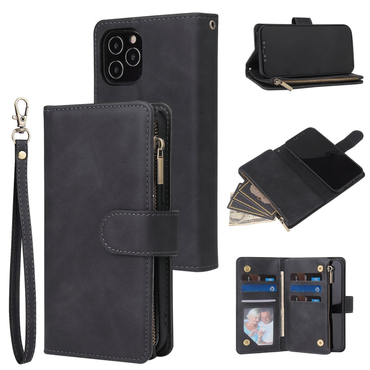 For iPhone 12 6.7 Multifunctional Retro Frosted Horizontal Flip Leather Case with Card Slot & Holder & Zipper Wallet & Photo Frame & Lanyard(Black)