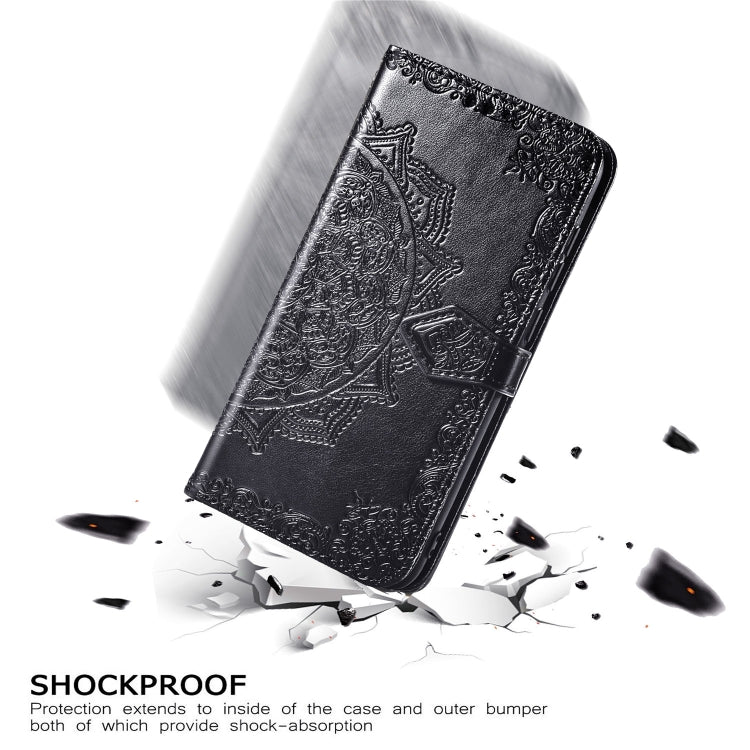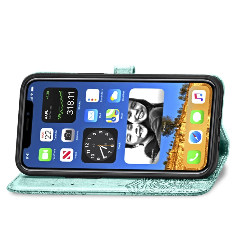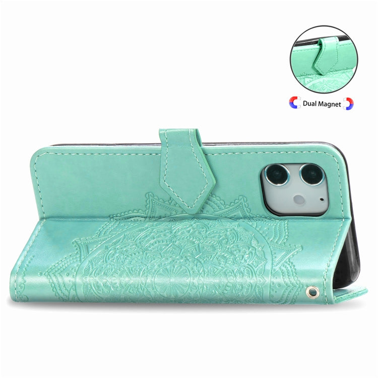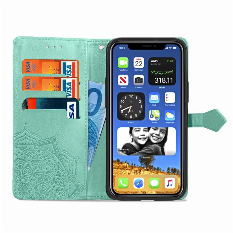 For iPhone 12 Halfway Mandala Embossing Pattern Horizontal Flip Leather Case with Holder & Card Slots & Wallet & Lanyard(Green)