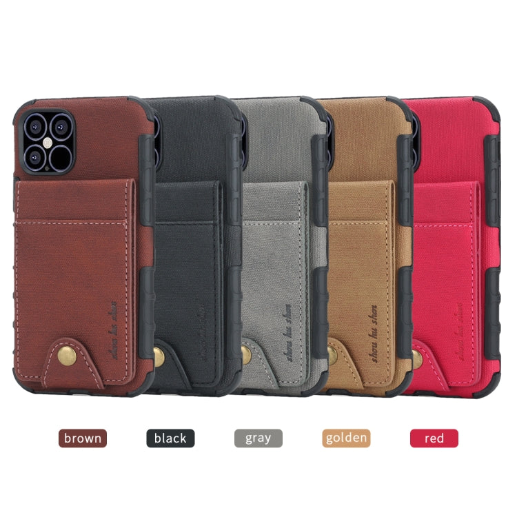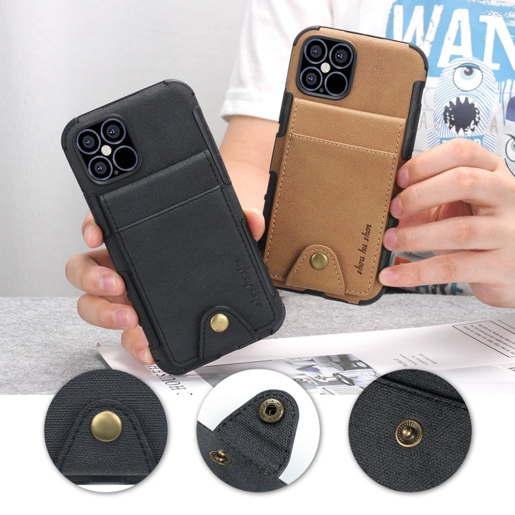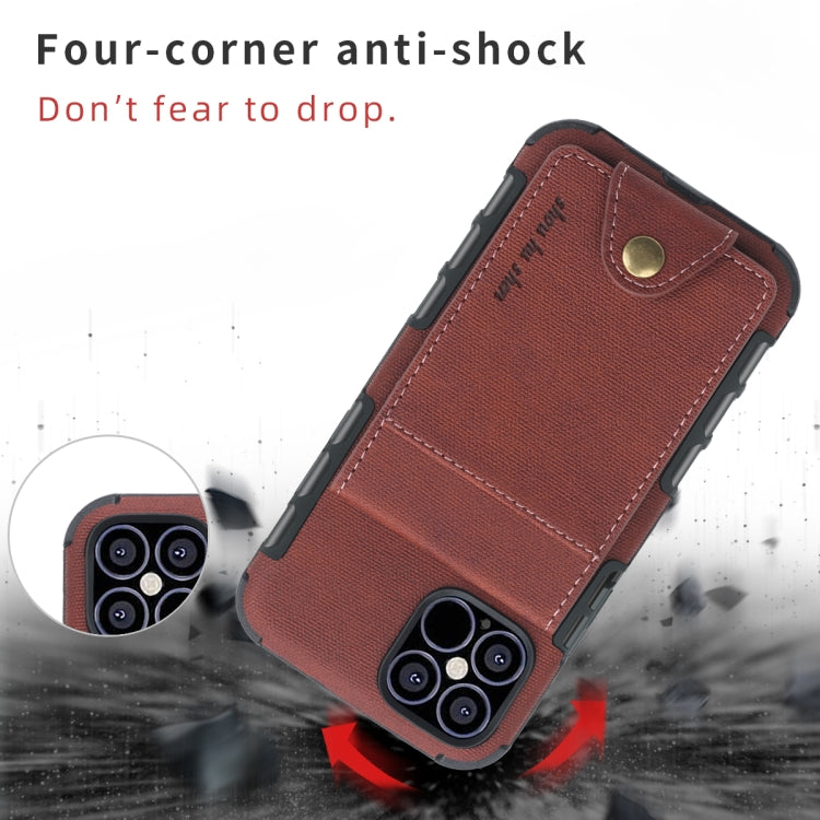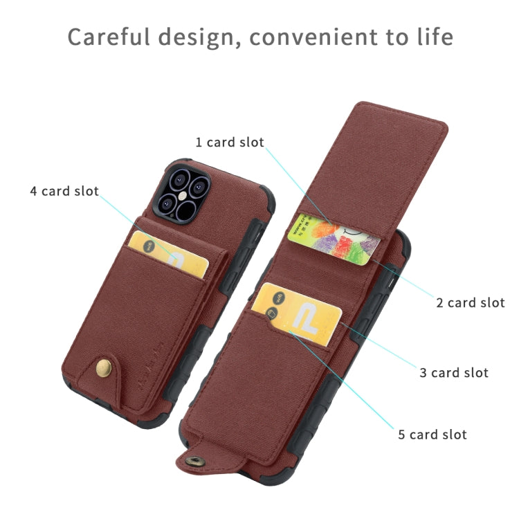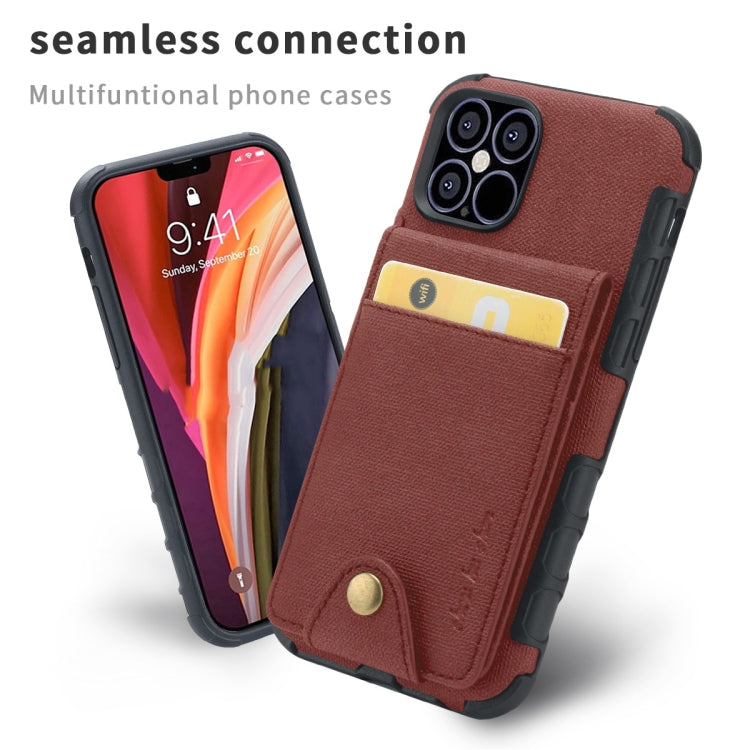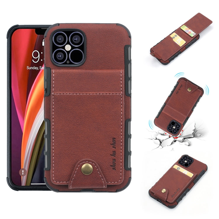 For iPhone 12 Max / 12 Pro Cloth Texture + TPU Vertical Flip Case with Card Slots(Brown)