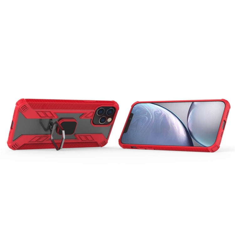 For iPhone 12 Max / 12 Pro Iron Warrior Shockproof PC + TPU Protective Case with 360 Degree Rotation Ring Holder(Red)