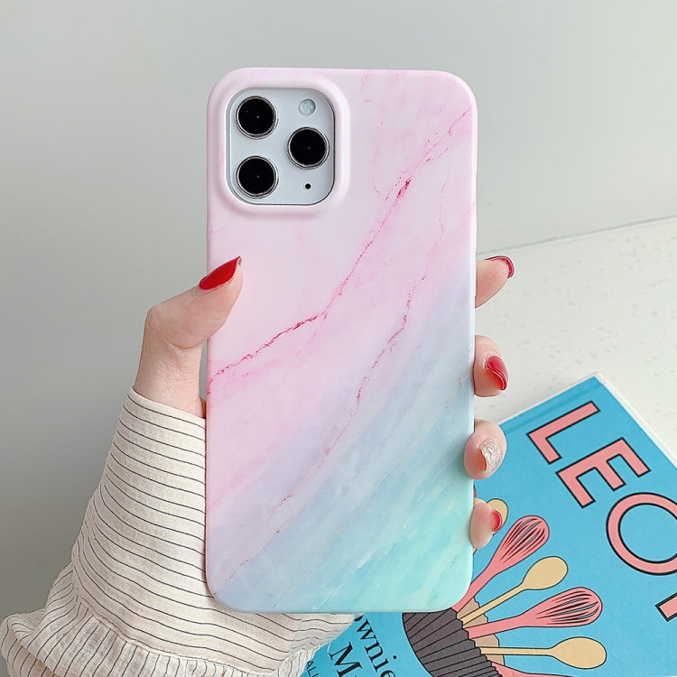 For iPhone 12 Max / 12 Pro Marble Pattern Soft TPU Protective Case(Pink Green Gradient )