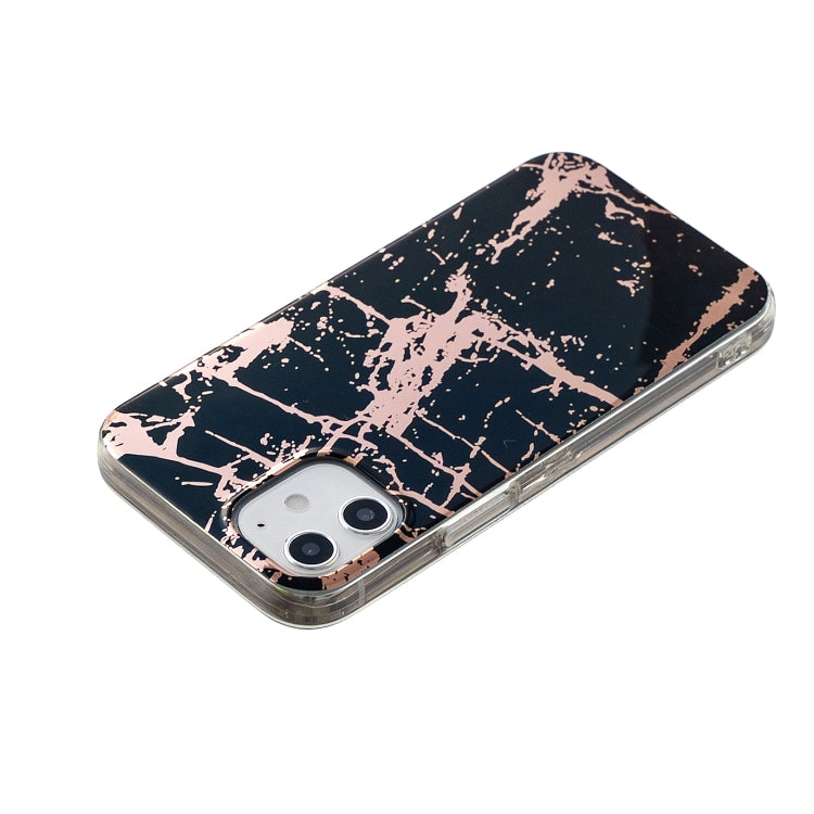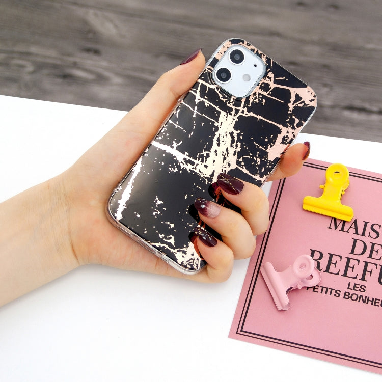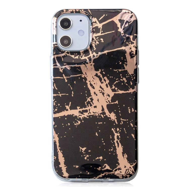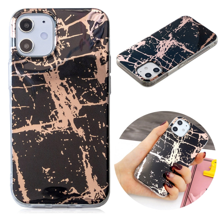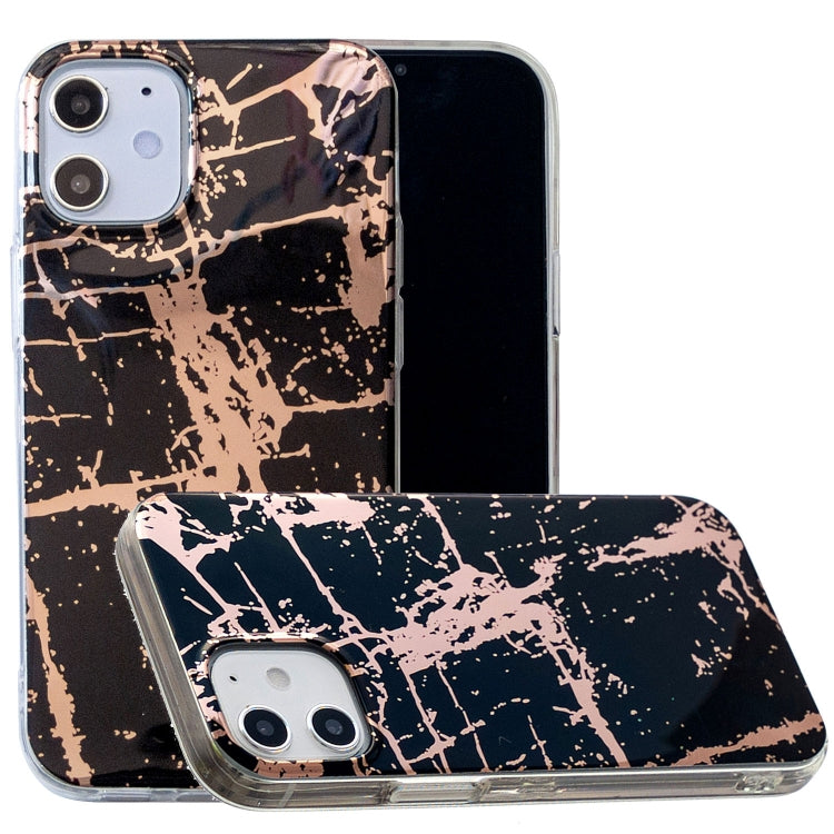 For iPhone 12 Plating Marble Pattern Soft TPU Protective Case(Black Gold)