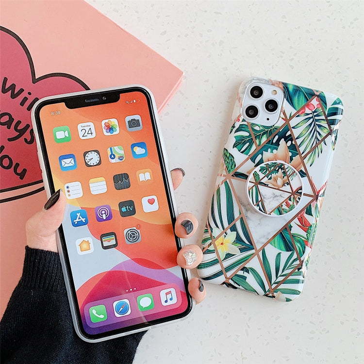 For iPhone 12 Pro / 12 Max Plating Geometric Flower Series IMD Mobile Phone Case With Folding Stand(Black PB5)