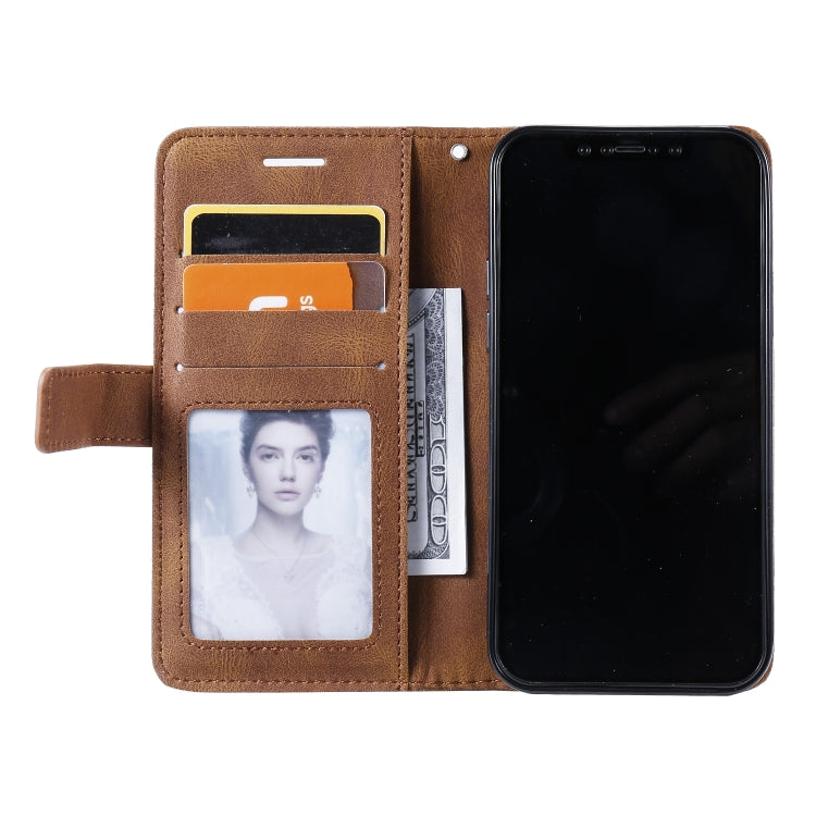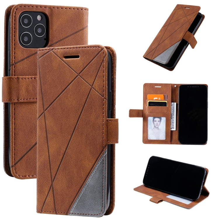 For iPhone 12 Pro / 12 Max Skin Feel Splicing Horizontal Flip Leather Case with Holder & Card Slots & Wallet & Photo Frame(Brown)