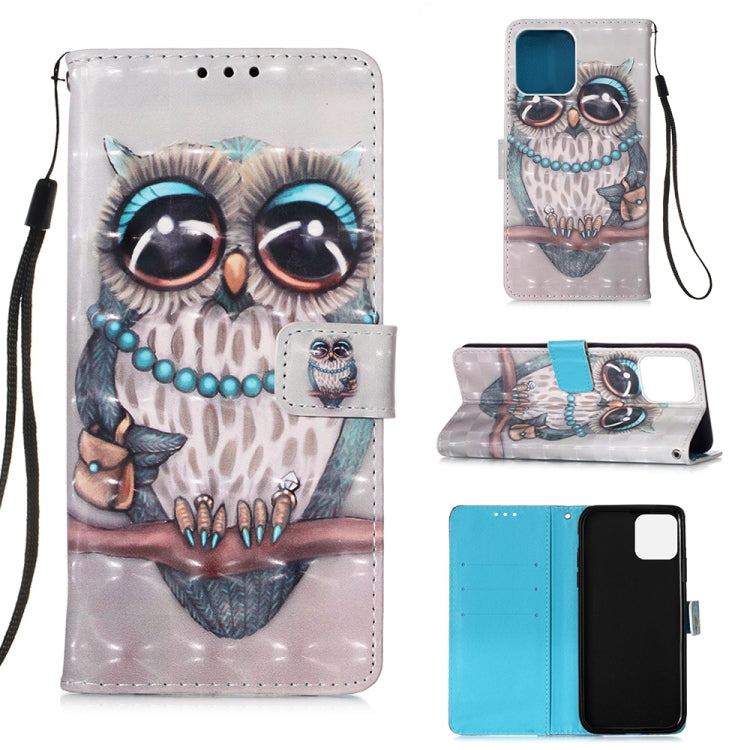 For iPhone 12 Pro Max 3D Painting Horizontal Flip Leather Case with Holder & Card Slot & Wallet & Lanyard(Owl)