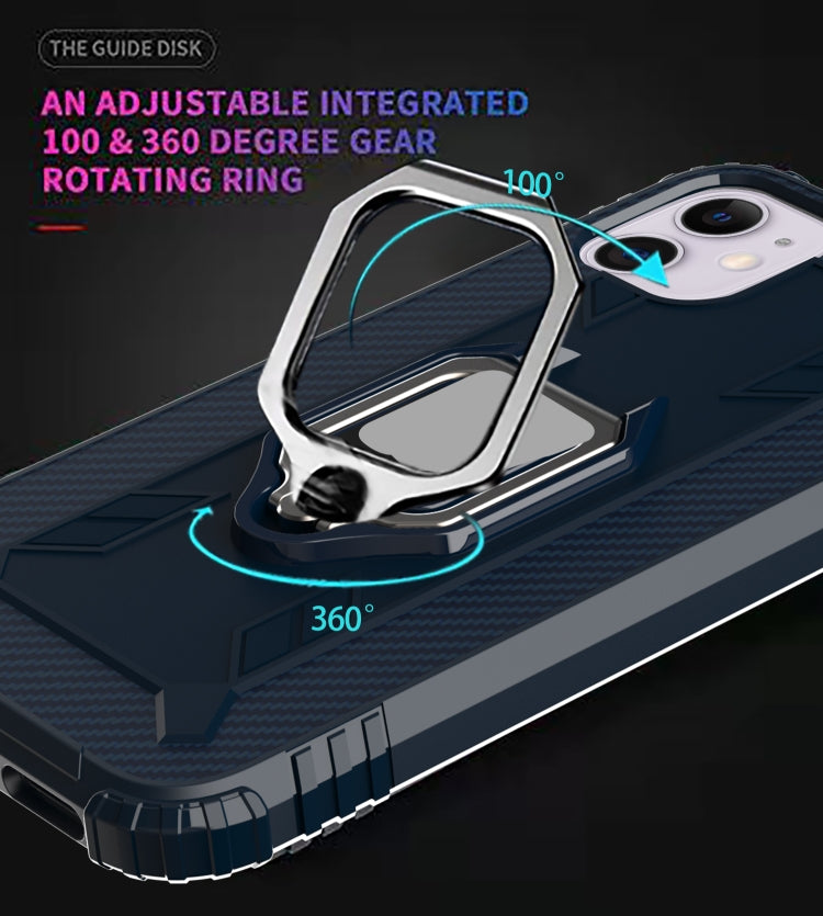 For iPhone 12 Pro Max 6.7 inch Carbon Fiber Protective Case with 360 Degree Rotating Ring Holder(Blue)
