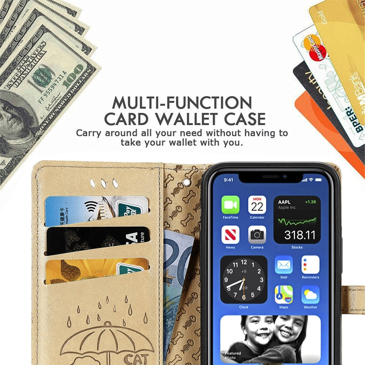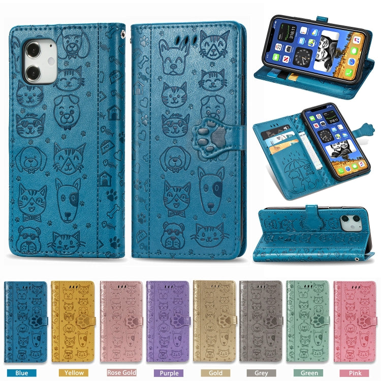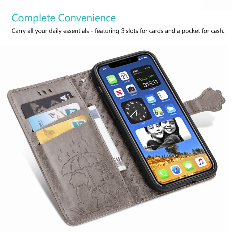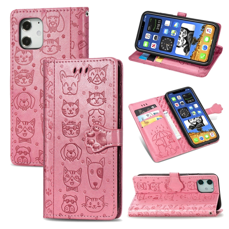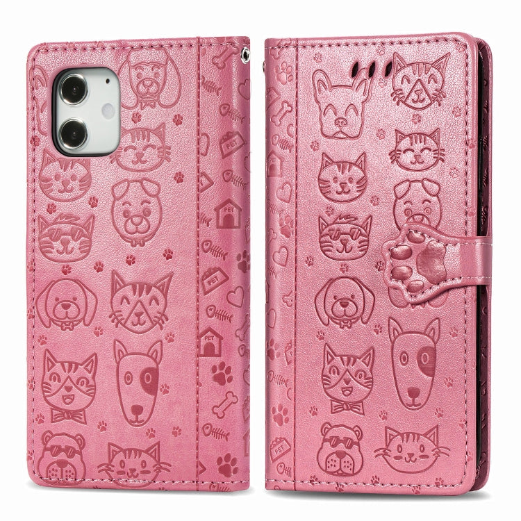 For iPhone 12 Pro Max 6.7 inch Cute Cat and Dog Embossed Horizontal Flip Leather Case with Holder & Card Slots & Wallet & Lanyard(Pink)