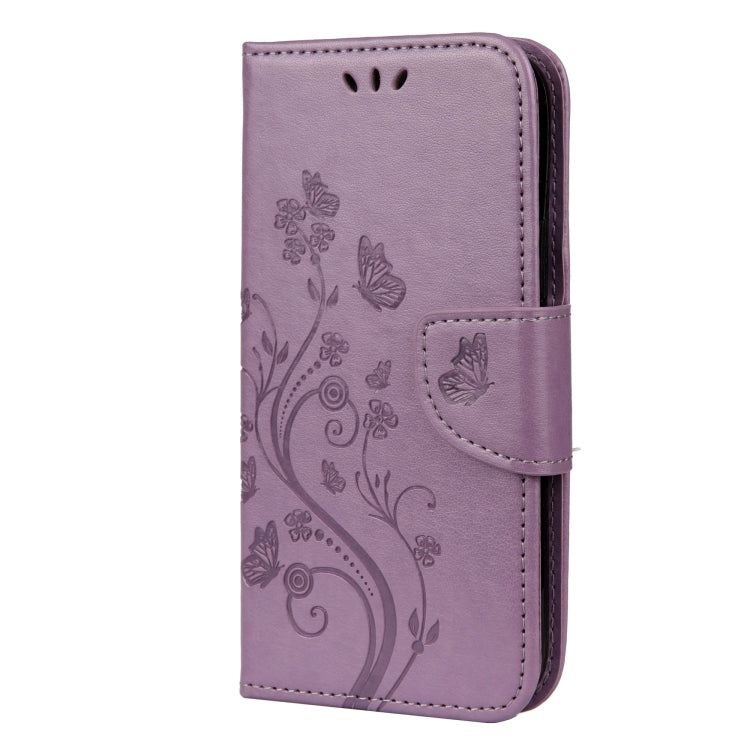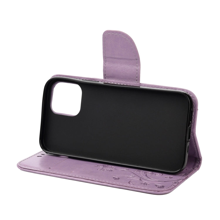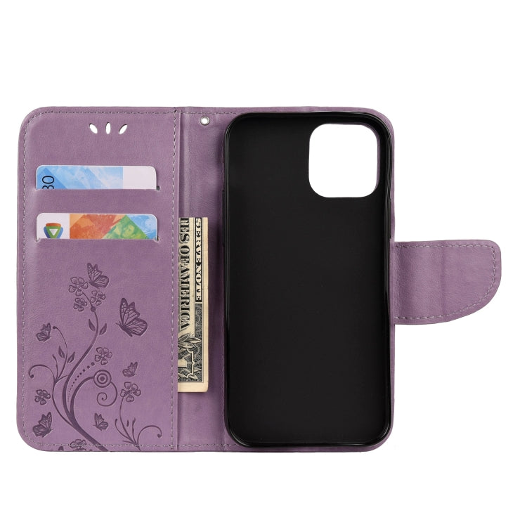 For iPhone 12 Pro Max Butterfly Flower Pattern Horizontal Flip Leather Case with Holder & Card Slots & Wallet(Light Purple)