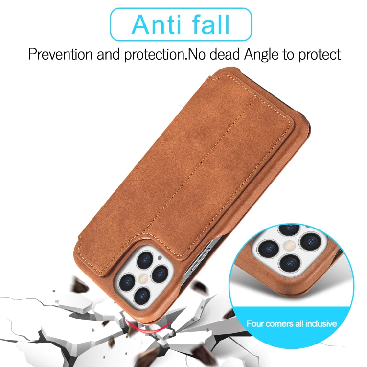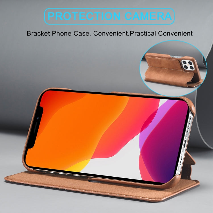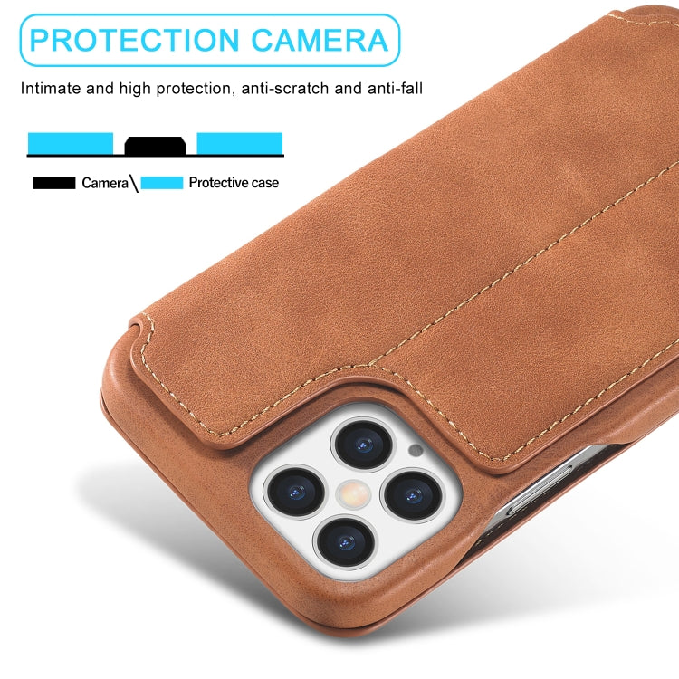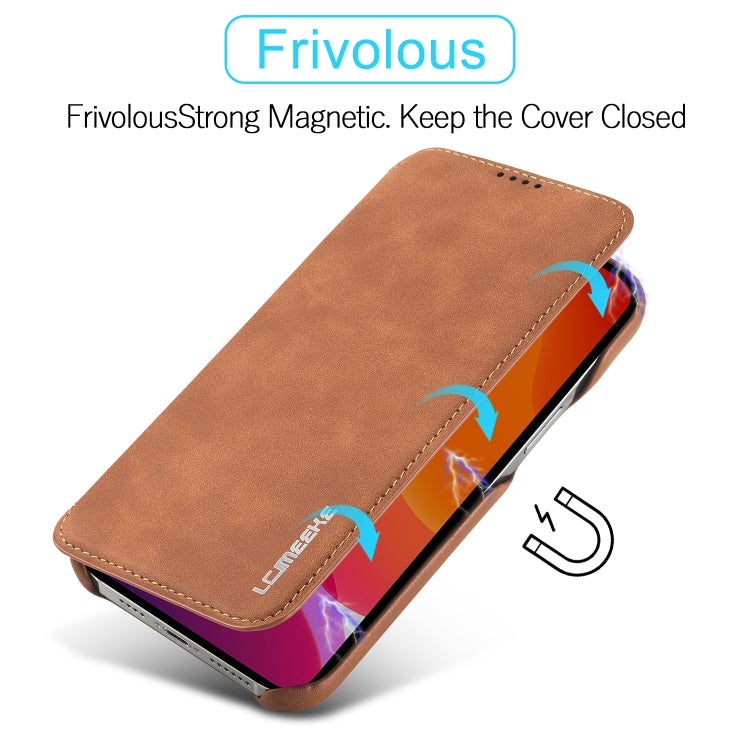 For iPhone 12 Pro Max LC.IMEEKE Hon Ancient Series Horizontal Flip Leather Case with Holder & Card Slot(Brown)