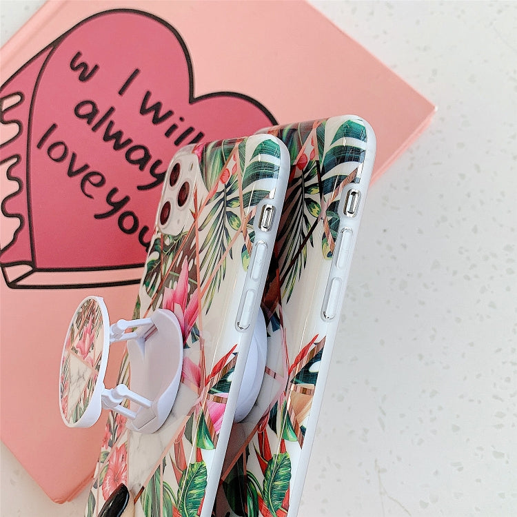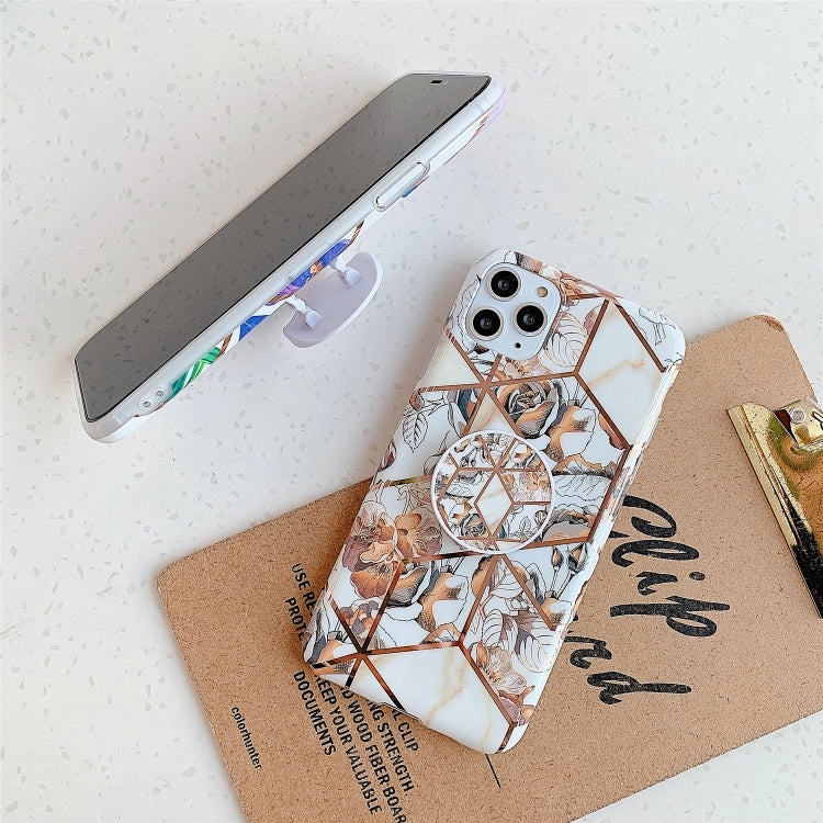 For iPhone 12 Pro Max Plating Geometric Flower Series IMD Mobile Phone Case With Folding Stand(Black PB5)