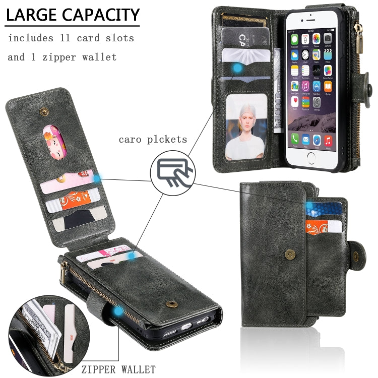 For iPhone 6 / 7 / 8 Multifunctional Retro Detachable Magnetic Horizontal Flip Leather Case with Card Slots & Holder & Wallet & Photo Frame(Dark Green)