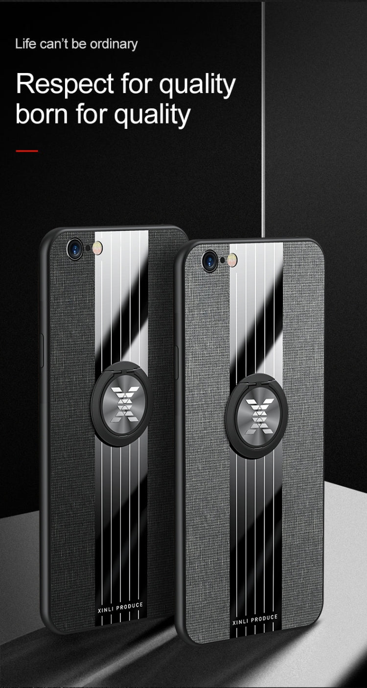For iPhone 6 Plus / 6s Plus XINLI Stitching Cloth Texture Shockproof TPU Protective Case with Ring Holder(Black)
