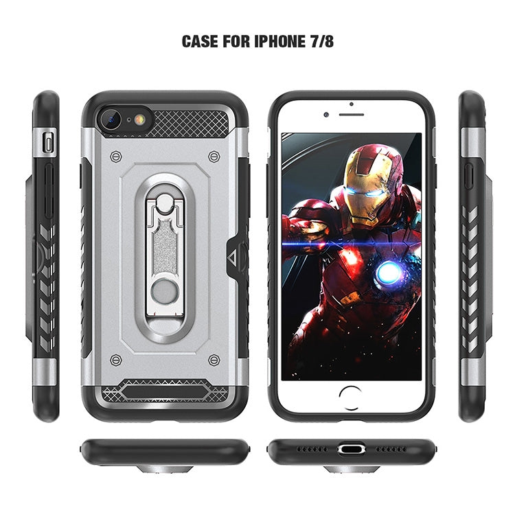 For iPhone 7 / 8 Shockproof PC + TPU Case with Holder(Black)