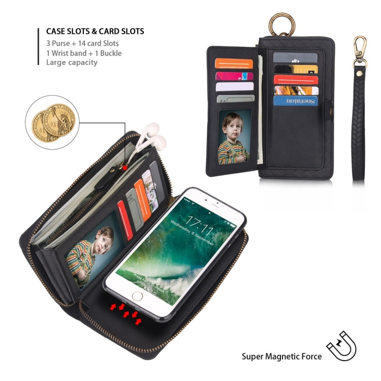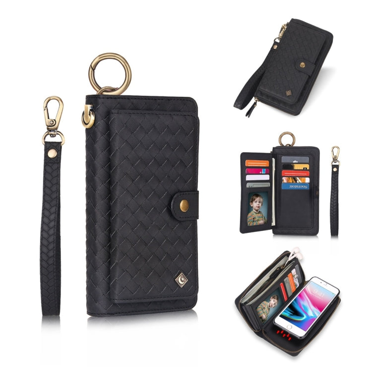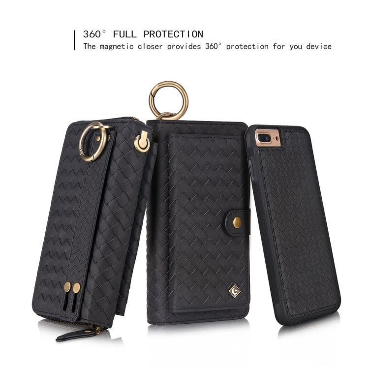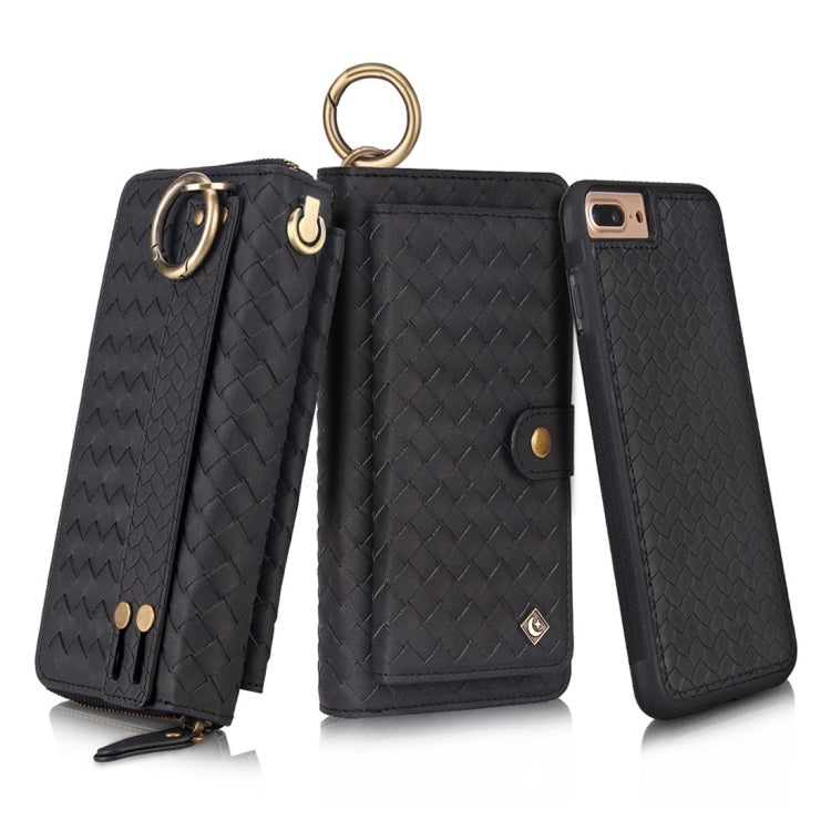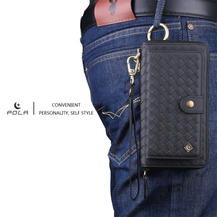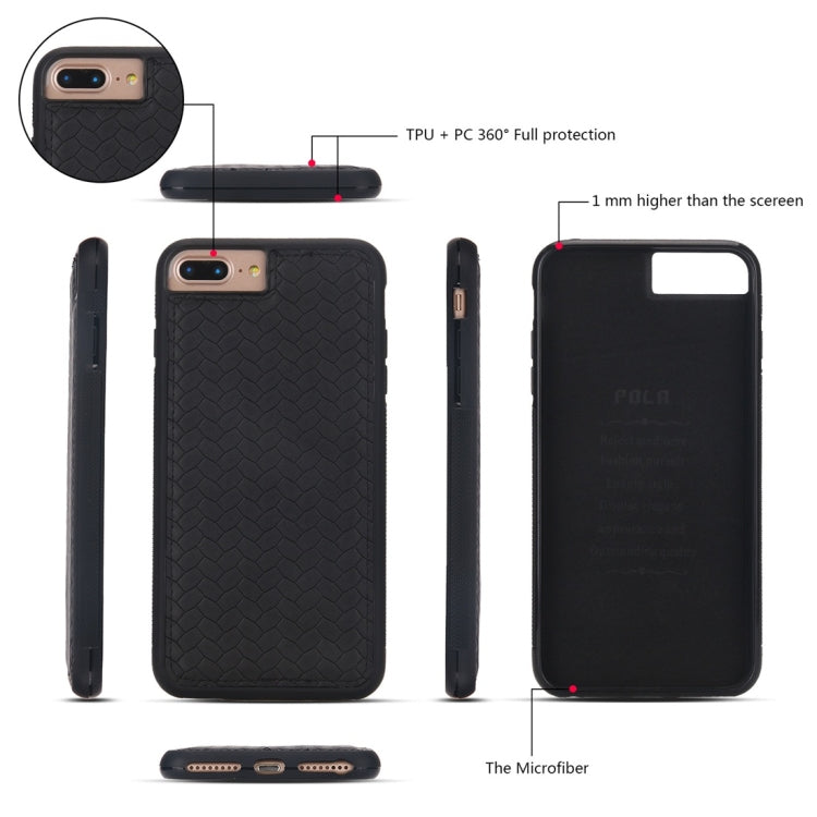 For iPhone 7 Plus / 8 Plus POLA Multi-function Fashion Weave Magnetic Horizontal Flip Leather Case with Card Slots & Wallet & Photo Frame & Lanyard(Black)