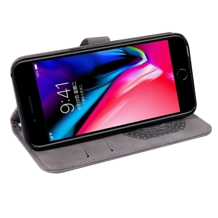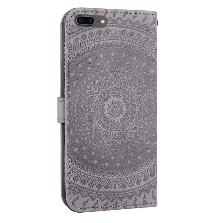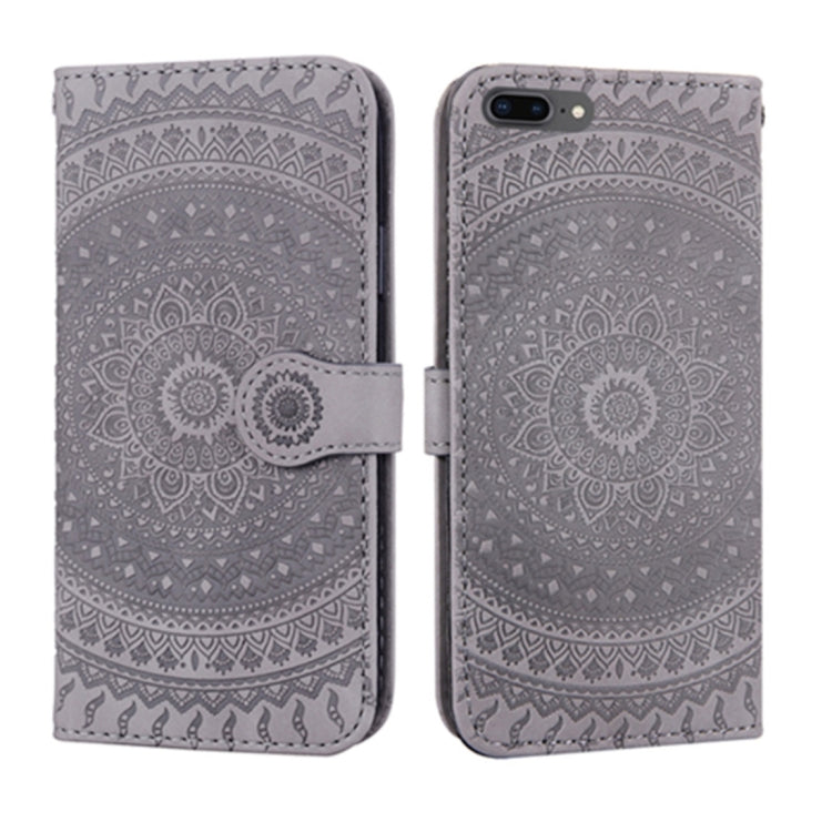 For iPhone 7 Plus & 8 Plus Pressed Printing Pattern Horizontal Flip PU Leather Case , with Holder & Card Slots & Wallet & & Lanyard(Gray)