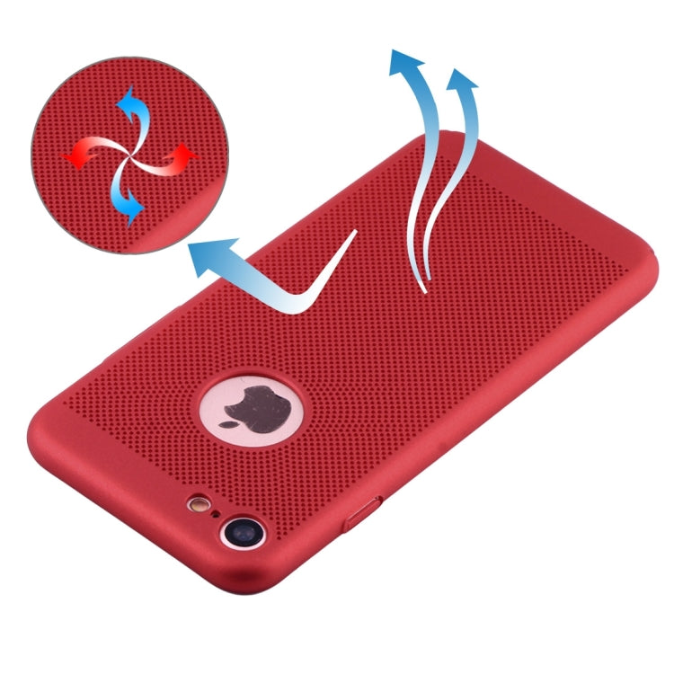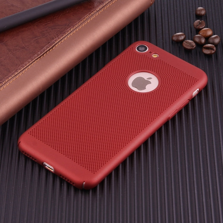 For iPhone 8 & 7 Lightweight Breathable Full Coverage PC Shockproof Protective Back Cover Case (Red)