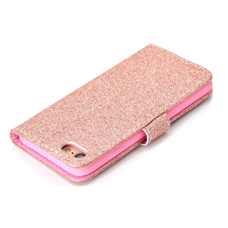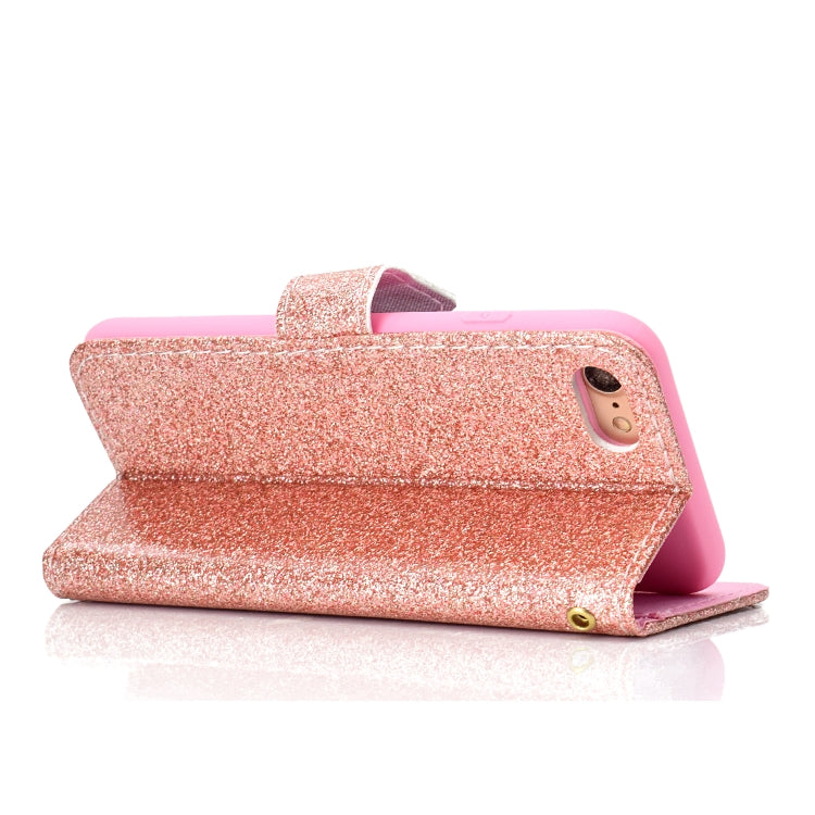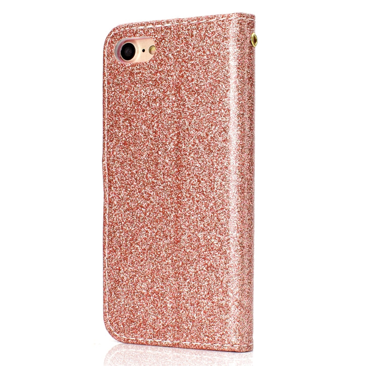 For iPhone 8 Glitter Powder Horizontal Flip Leather Case with Card Slots & Holder & Photo Frame & Wallet(Rose Gold)