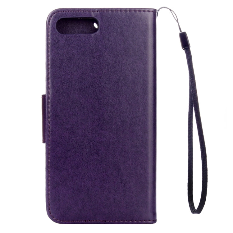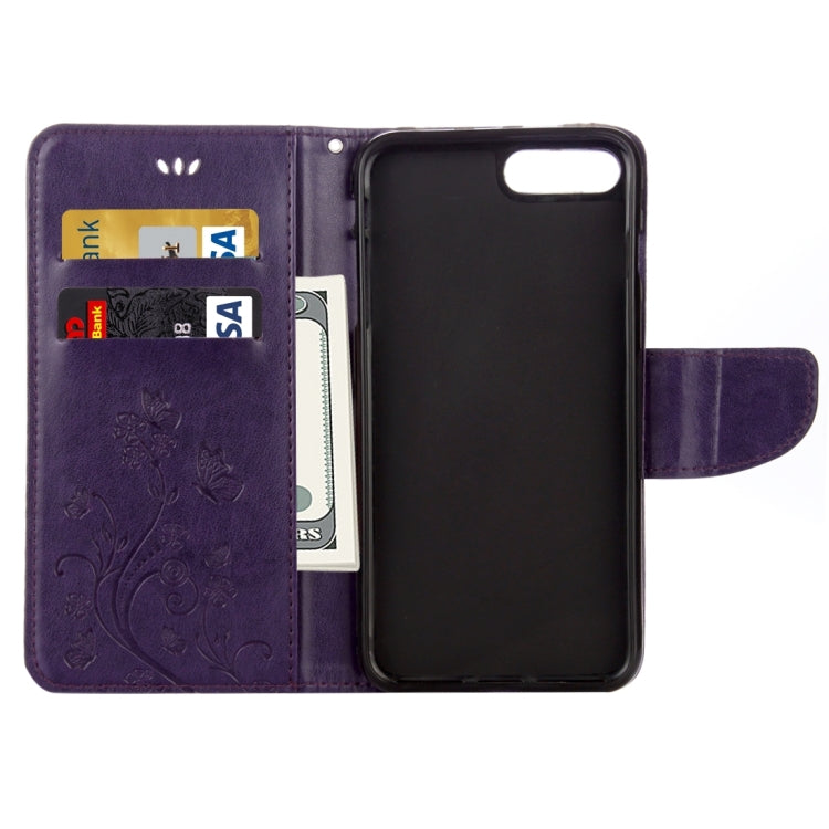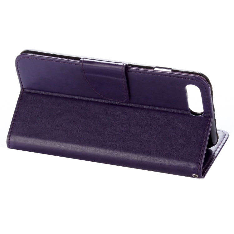 For iPhone 8 Plus & 7 Plus Flowers Embossing Horizontal Flip Leather Case with Holder & Card Slots & Wallet & Lanyard(Purple)