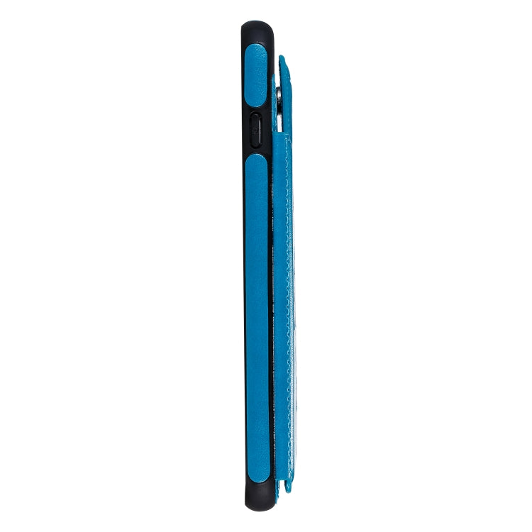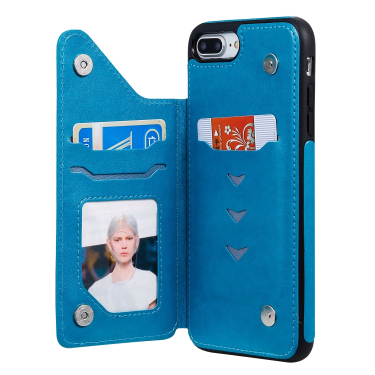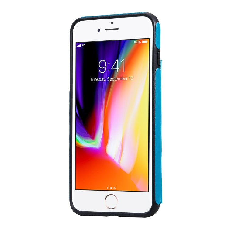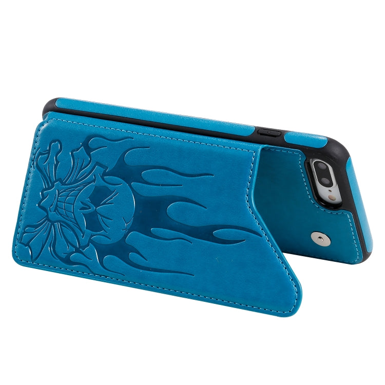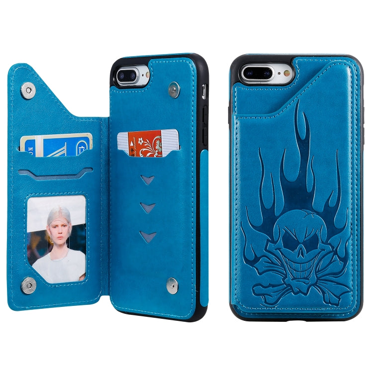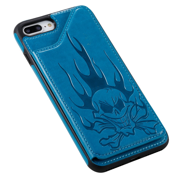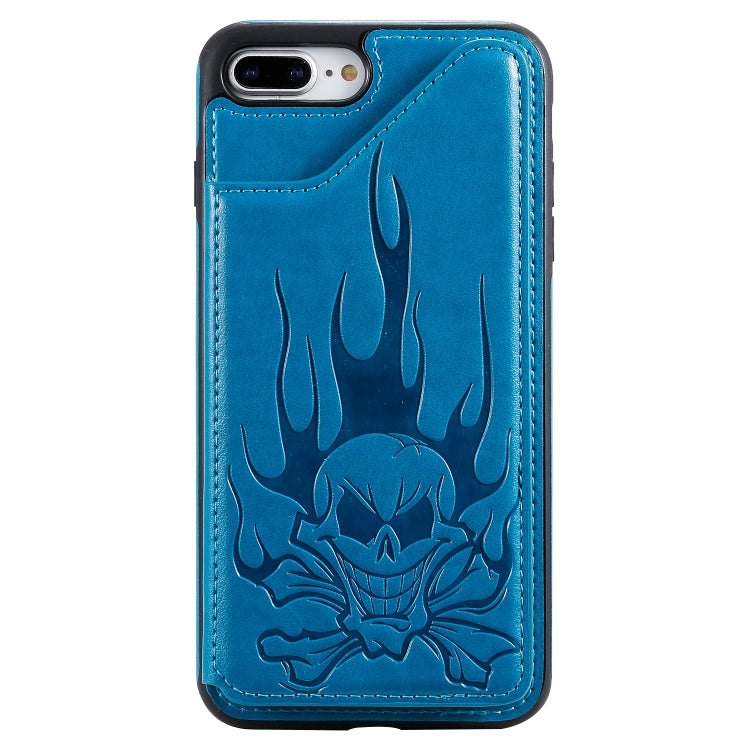 For iPhone 8 Plus / 7 Plus Skull Head Embossing Pattern Shockproof Protective Case with Holder & Card Slots & Wallet(Blue)