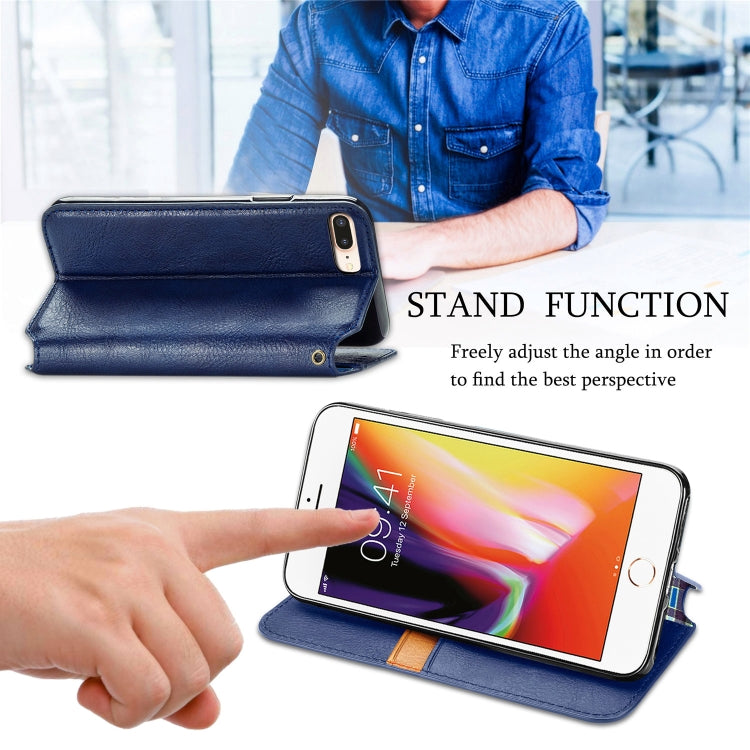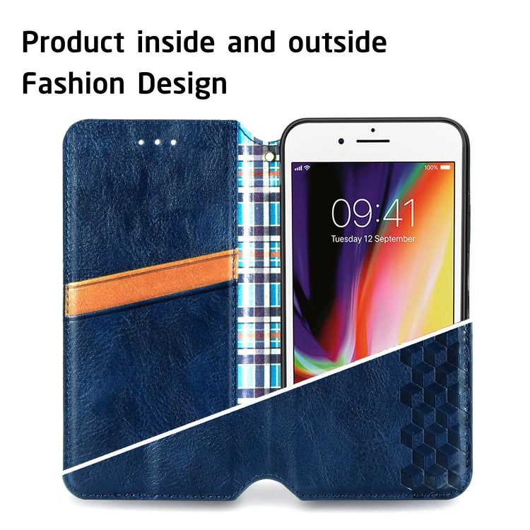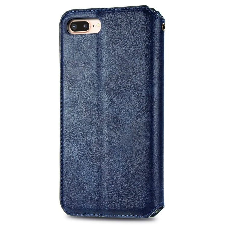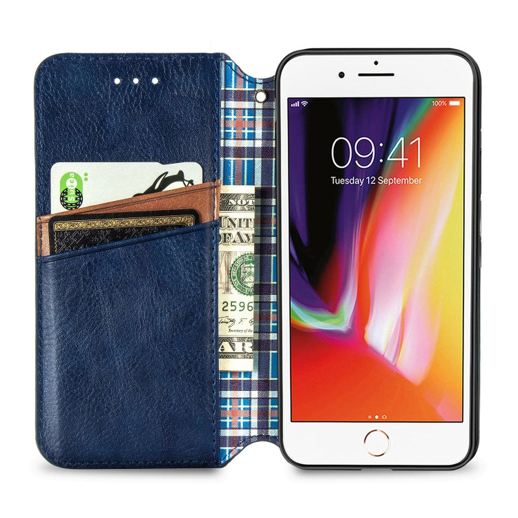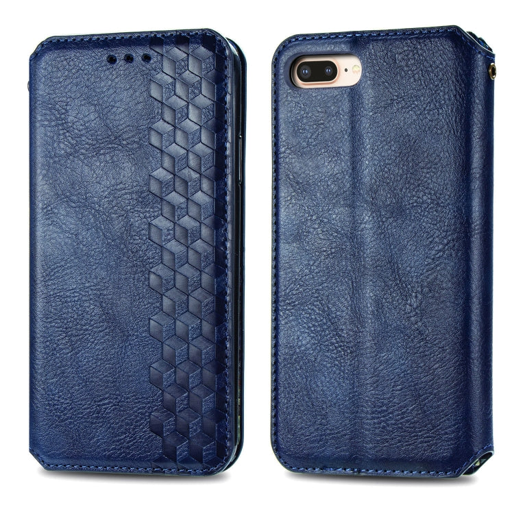 For iPhone 8 Plus & 7Plus Cubic Grid Pressed Horizontal Flip Magnetic Leather Case with Holder & Card Slots & Wallet(Blue)
