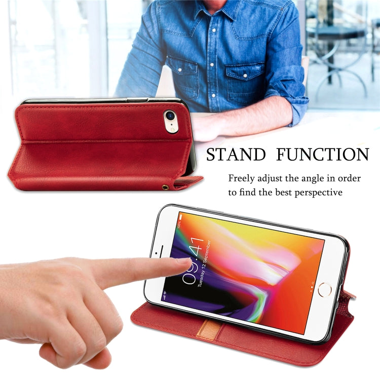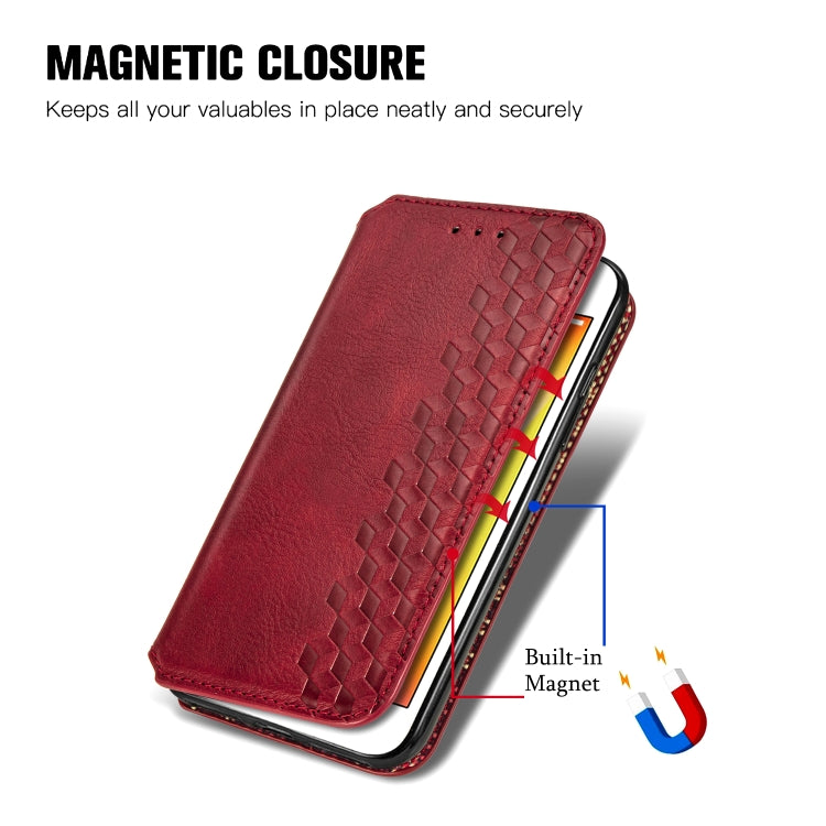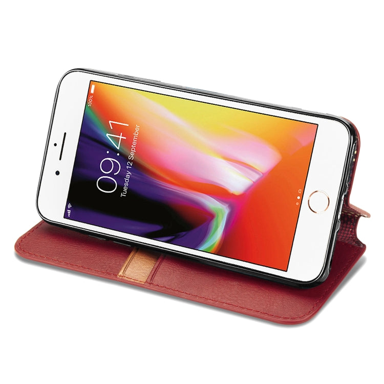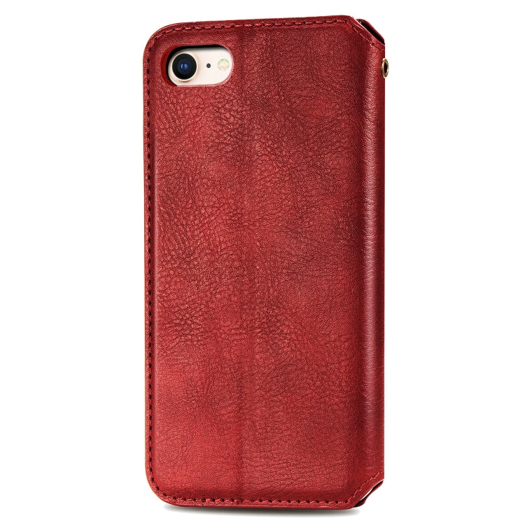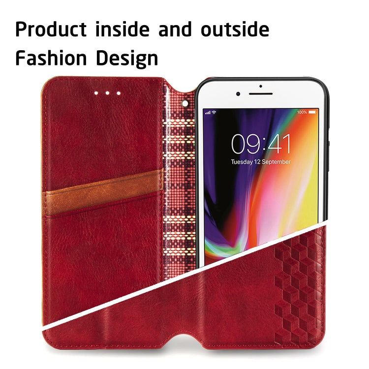 For iPhone SE 2020 / 8 / 7 Cubic Grid Pressed Horizontal Flip Magnetic Leather Case with Holder & Card Slots & Wallet(Red)