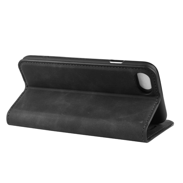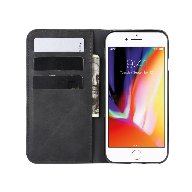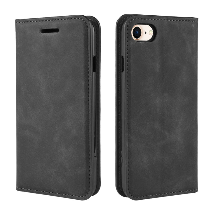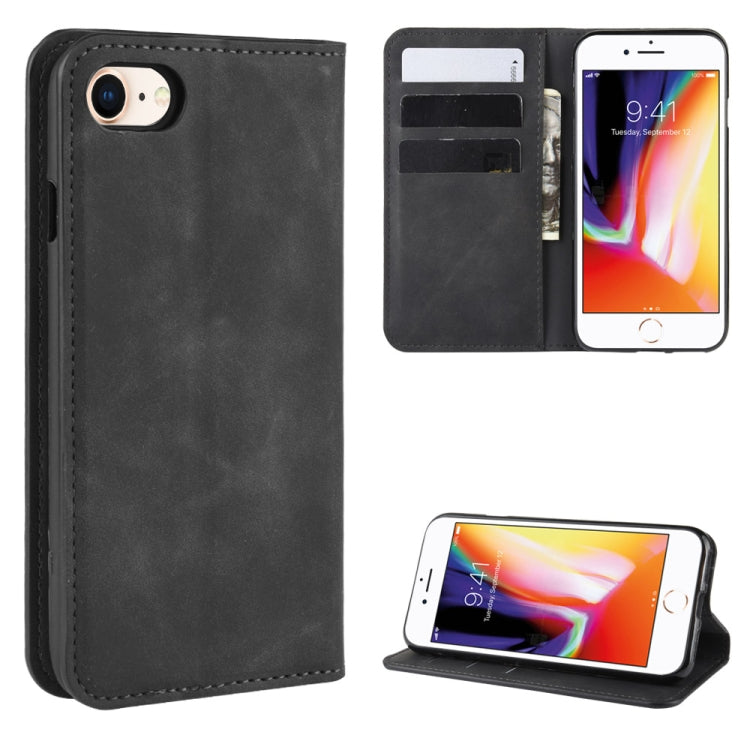 For iPhone SE 2020 / 8 / 7 Retro-skin Business Magnetic Suction Leather Case with Purse-Bracket-Chuck(Black)
