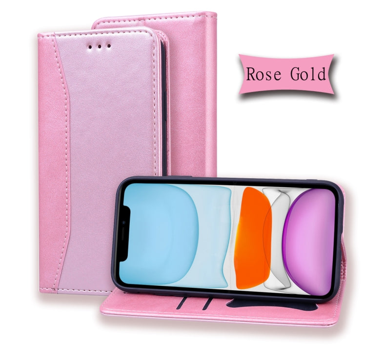 For iPhone X Business Stitching Horizontal Flip Leather Case with Double Folding & Bracket & Card Slots & Photo Frame & Wallet(Rose Gold)