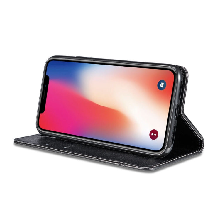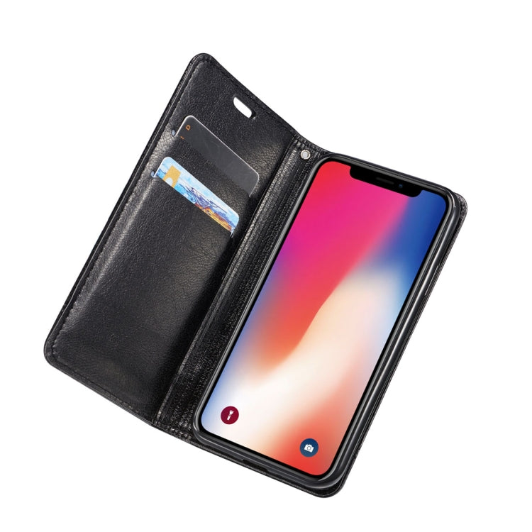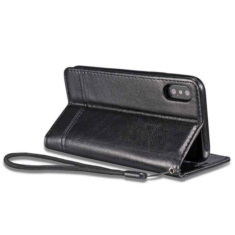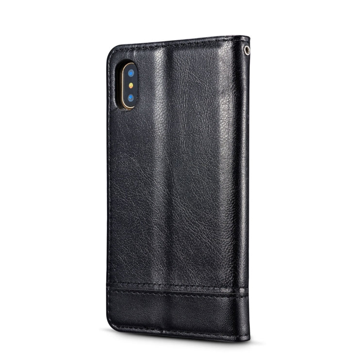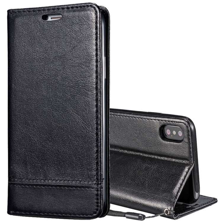 For iPhone X / XS Double-sided Absorption Splicing Horizontal Flip Leather Case with Holder & Card Slots & Lanyard(Black)