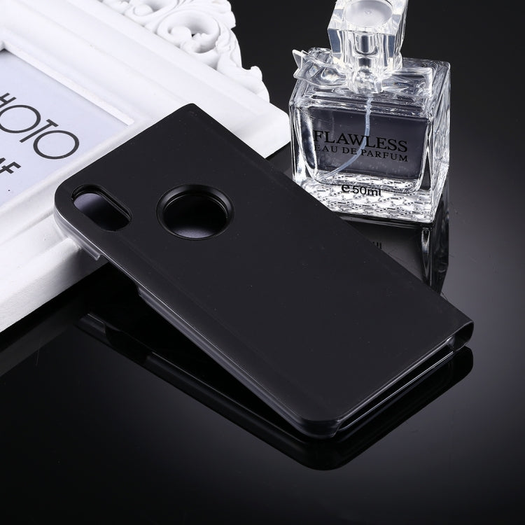 For iPhone X / XS Electroplating Mirror Horizontal Flip Leather Case with Holder (Black)
