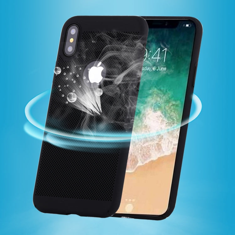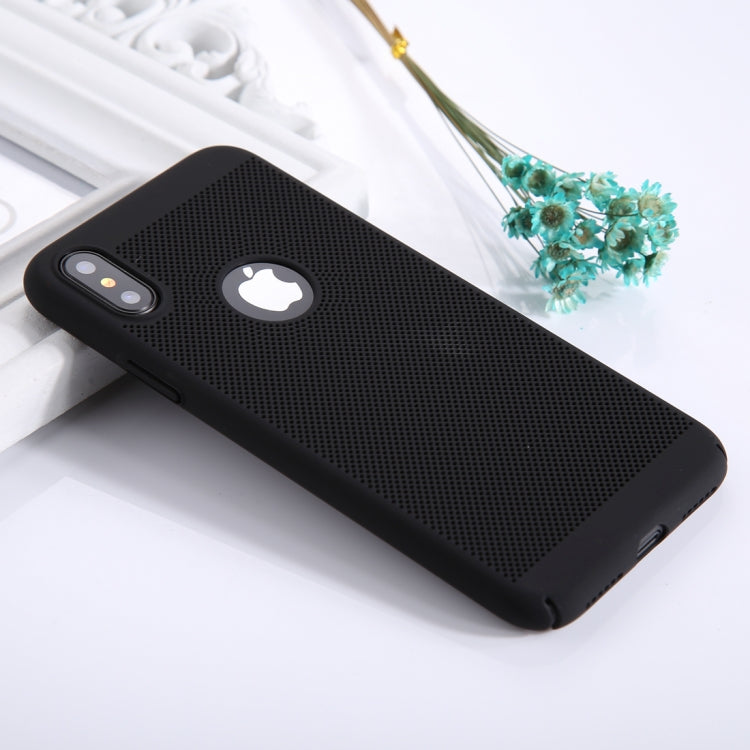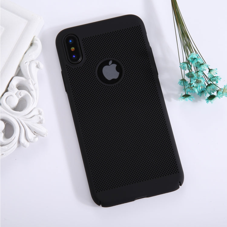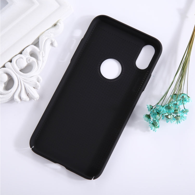 For iPhone X / XS Fuel Injection Breathable Mesh PC Anti-Scratch Protective Cover Case (Black)