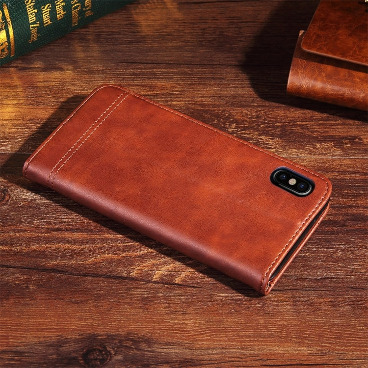 For iPhone X / XS Retro Crazy Horse Texture Casual Style Horizontal Flip Leather Case with Holder & Card Slots & Wallet(Brown)