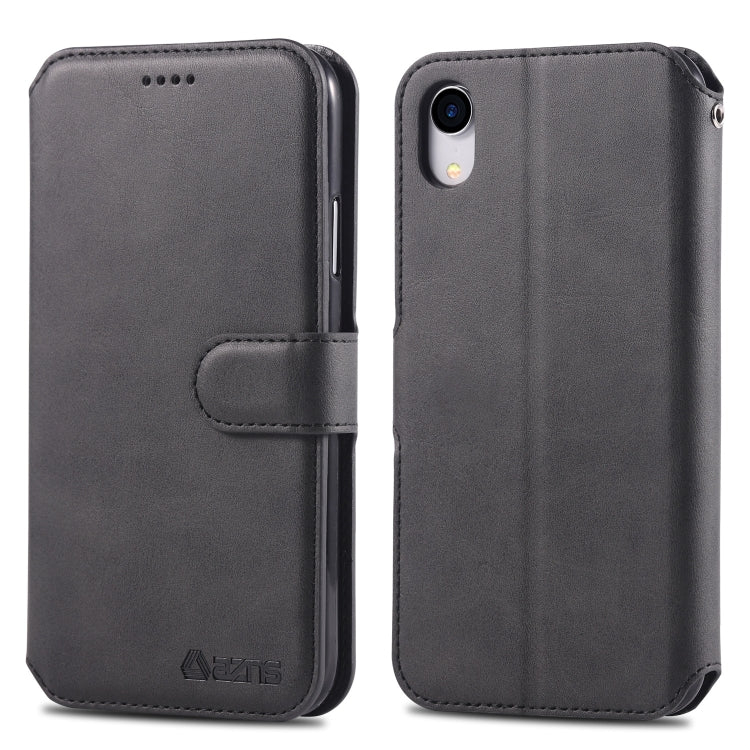 For iPhone XR AZNS Calf Texture Magnetic Horizontal Flip PU Leather Case with Holder & Card Slots & Photo Frame(Black)