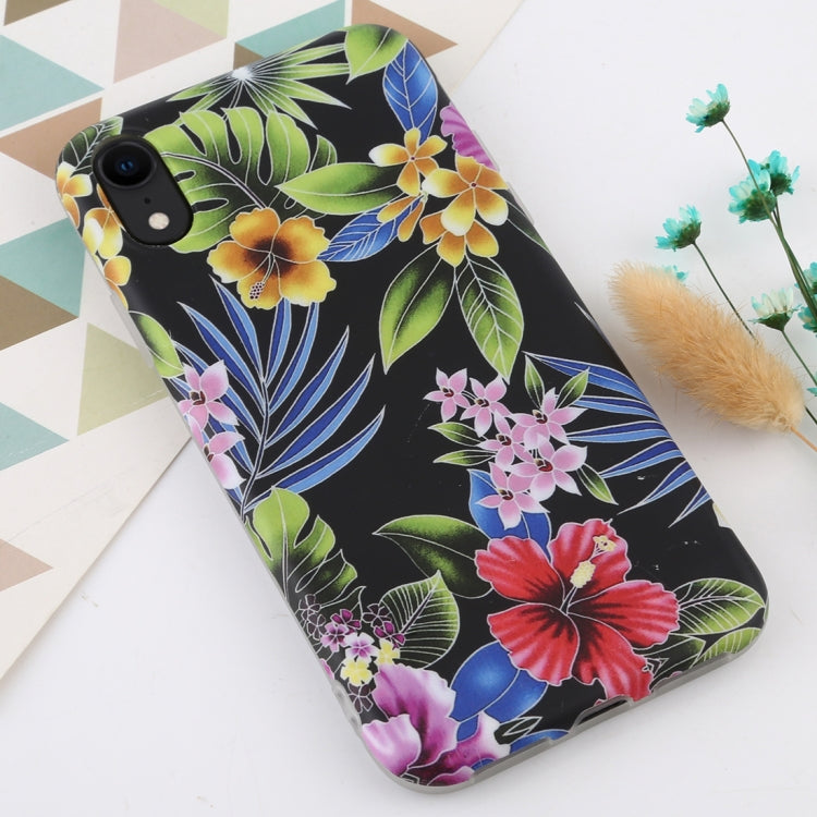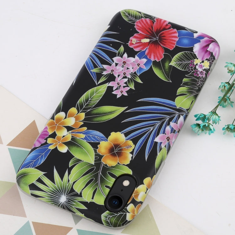 For iPhone XR Flower Pattern TPU Protecitve Case(Black Background Flower)
