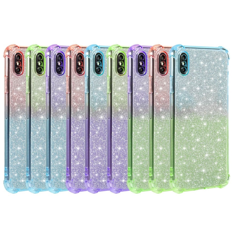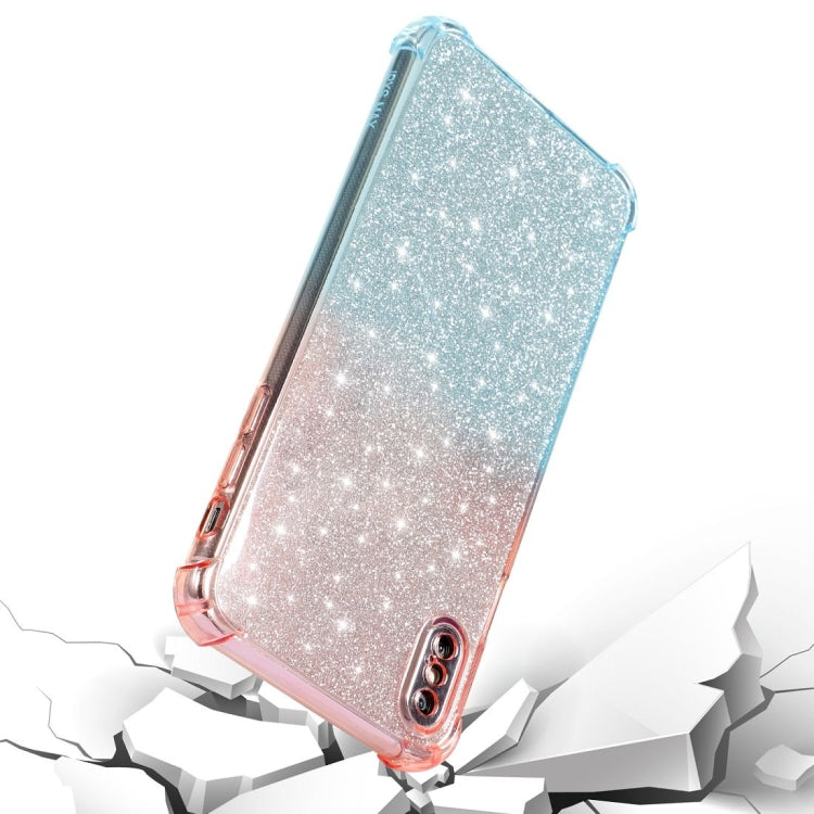 For iPhone XR Gradient Glitter Powder Shockproof TPU Protective Case(Blue Purple)