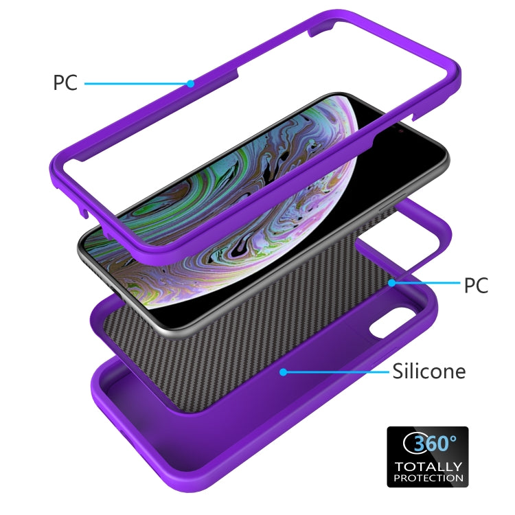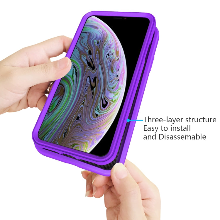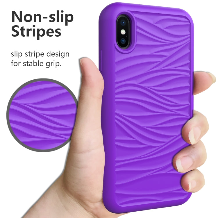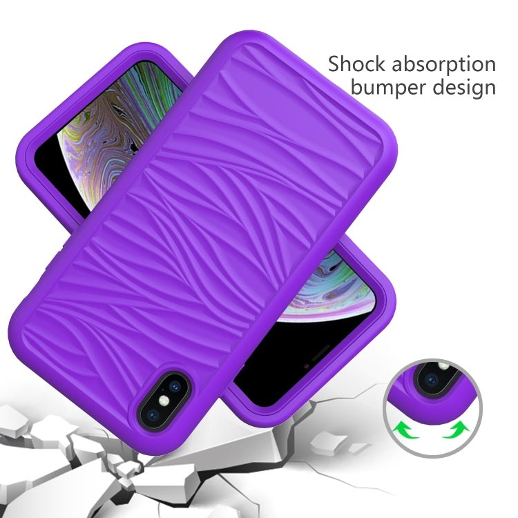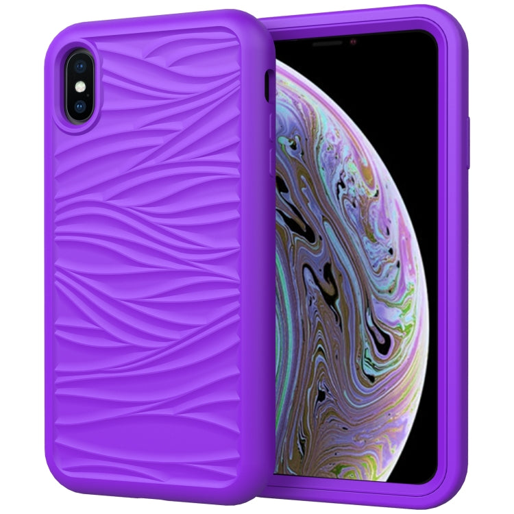 For iPhone XR Wave Pattern 3 in 1 Silicone+PC Shockproof Protective Case(Purple)