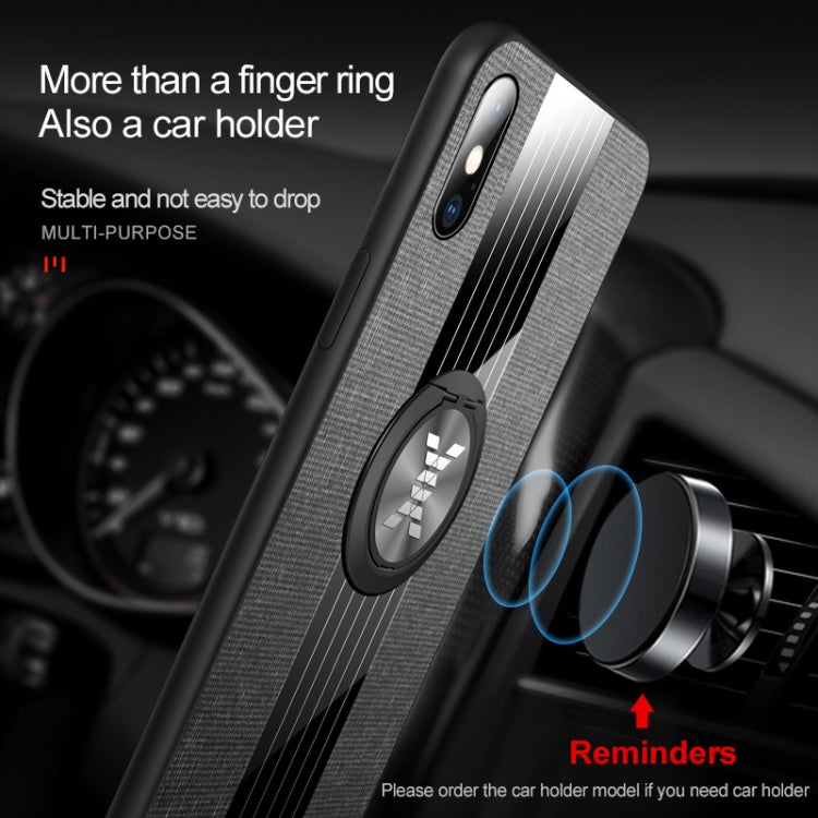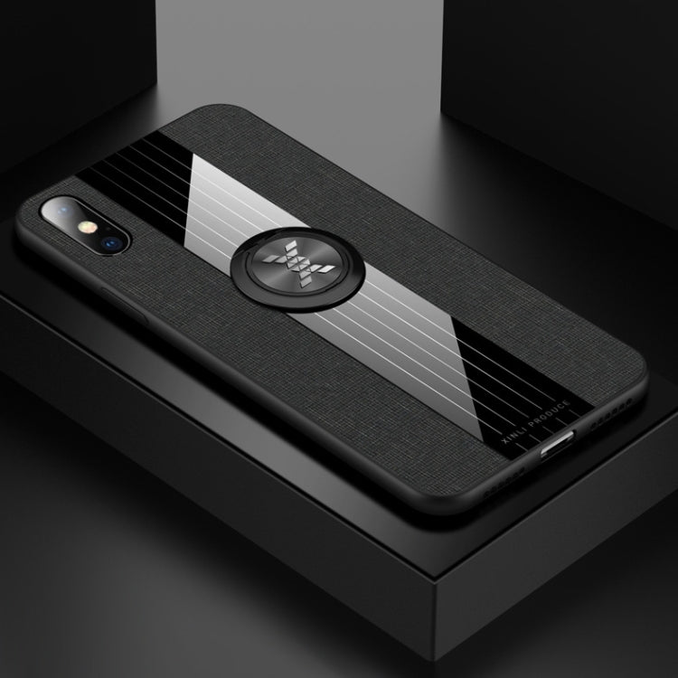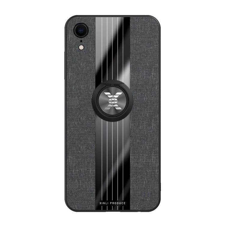 For iPhone XR XINLI Stitching Cloth Texture Shockproof TPU Protective Case with Ring Holder(Black)